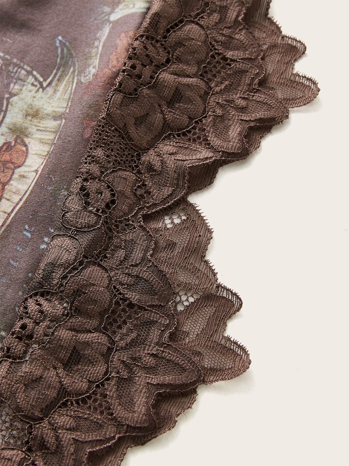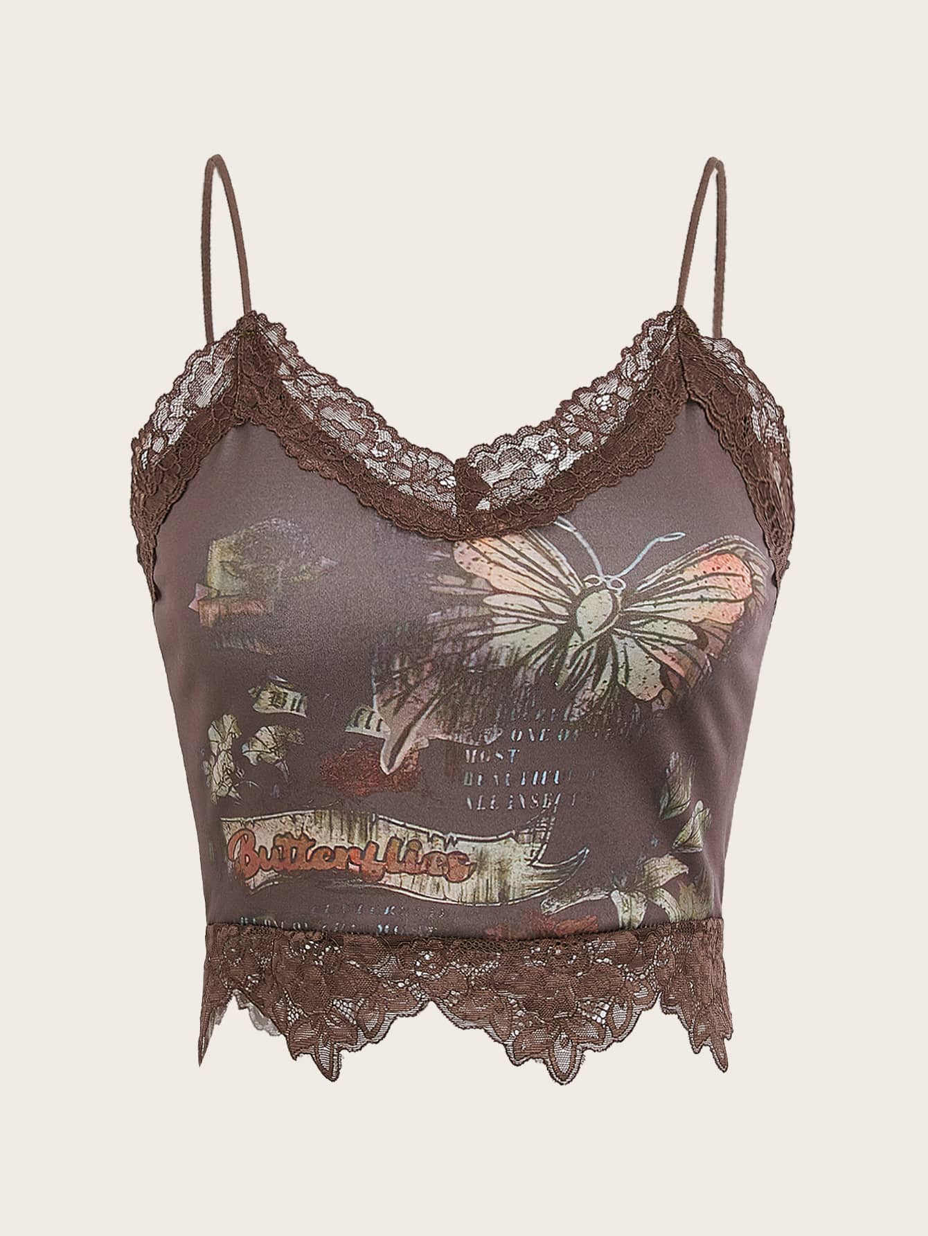 Goth Butterfly Print Lace Trim Cami Top