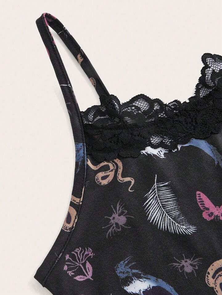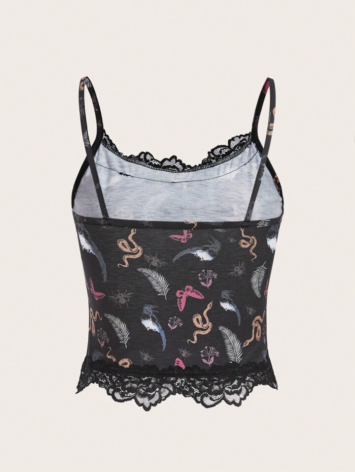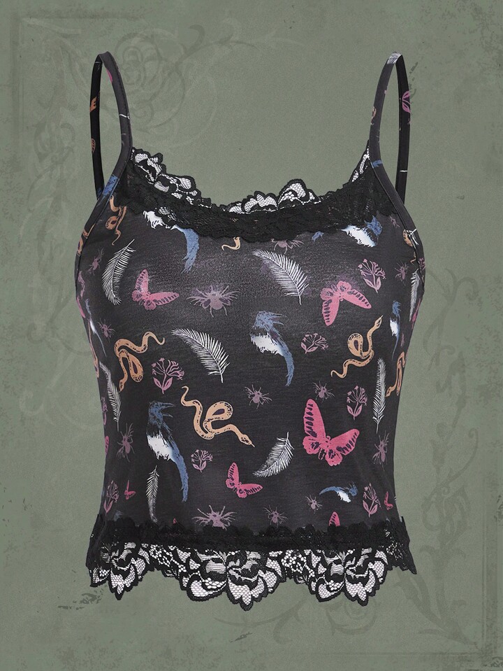 Goth Butterfly & Snake Print Contrast Lace Cami Top