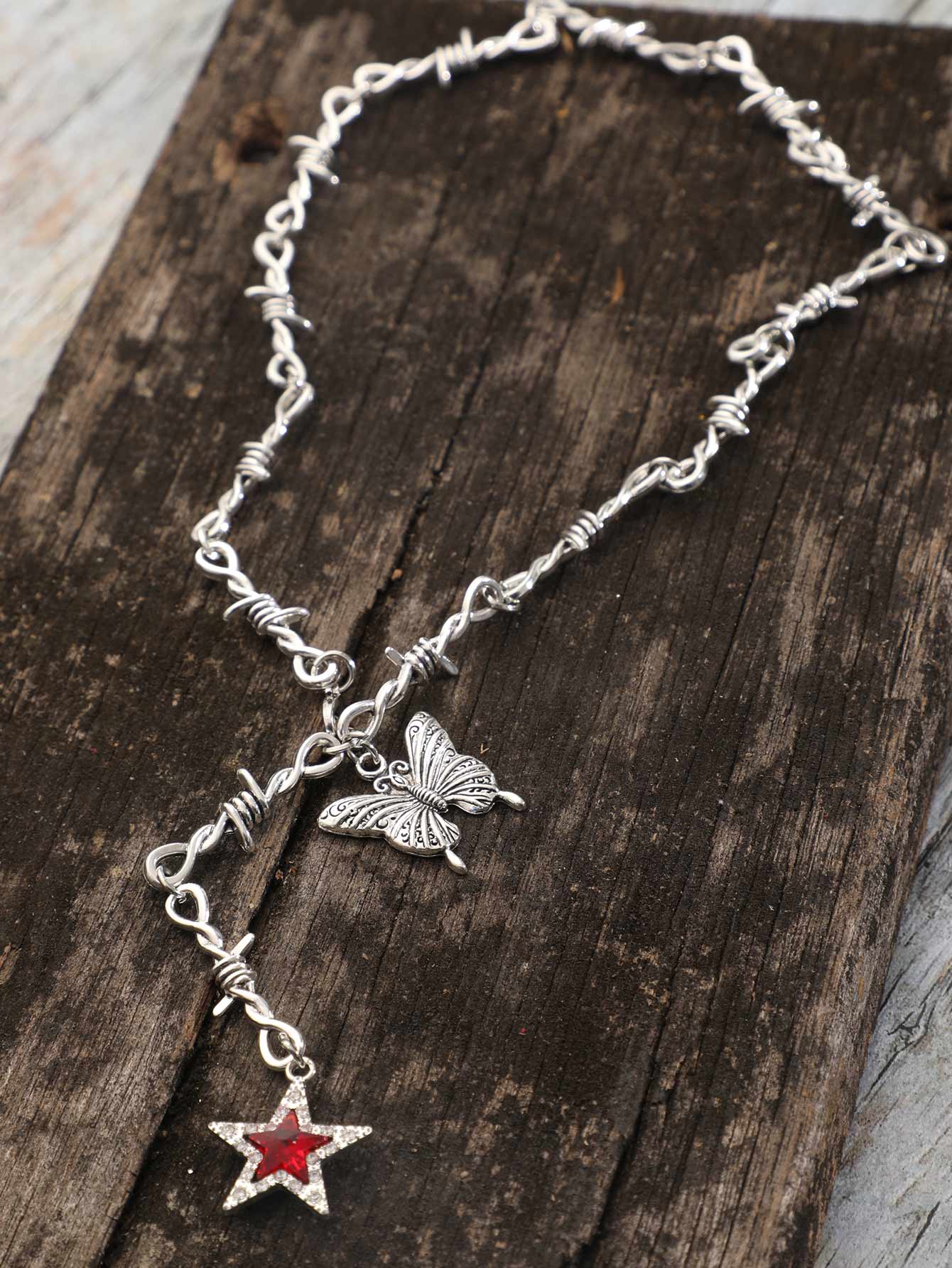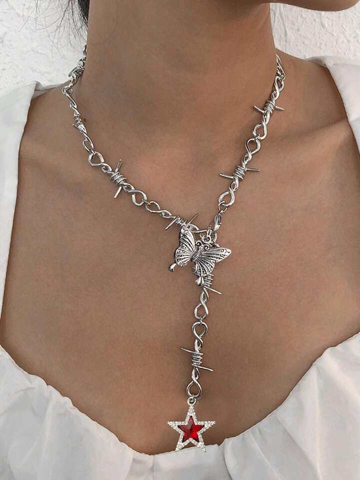 Goth Butterfly & Star Charm Y Lariat Necklace
