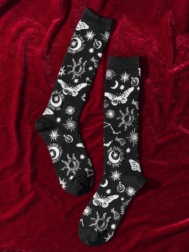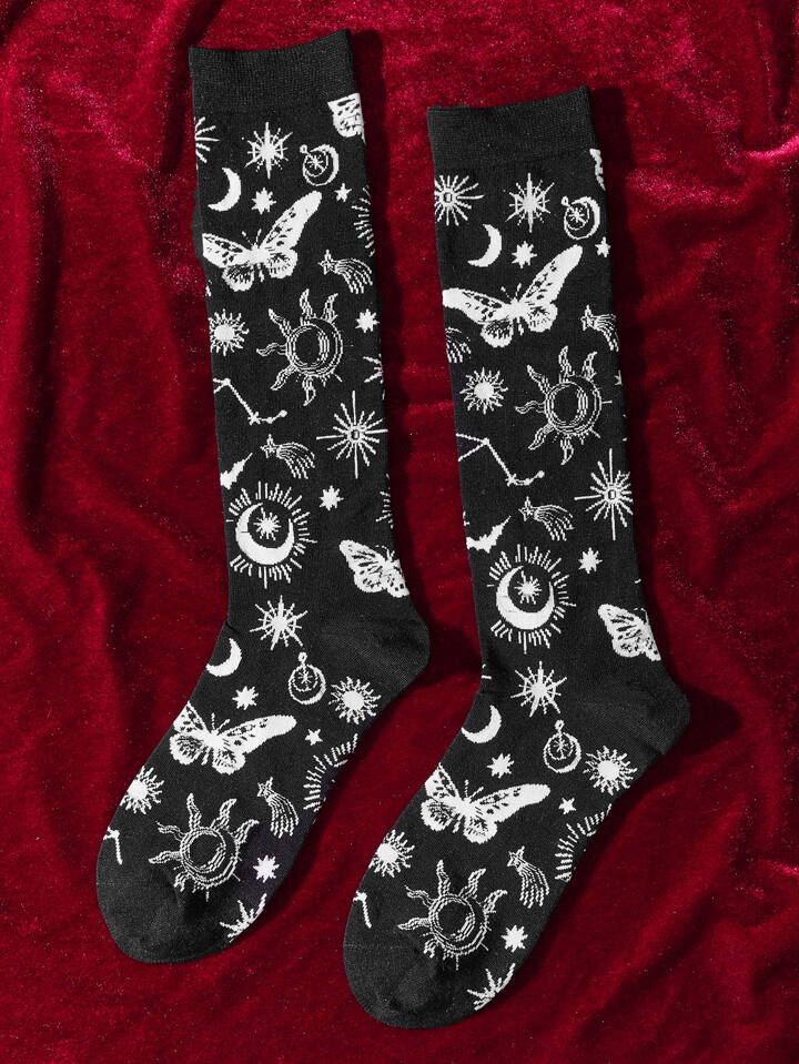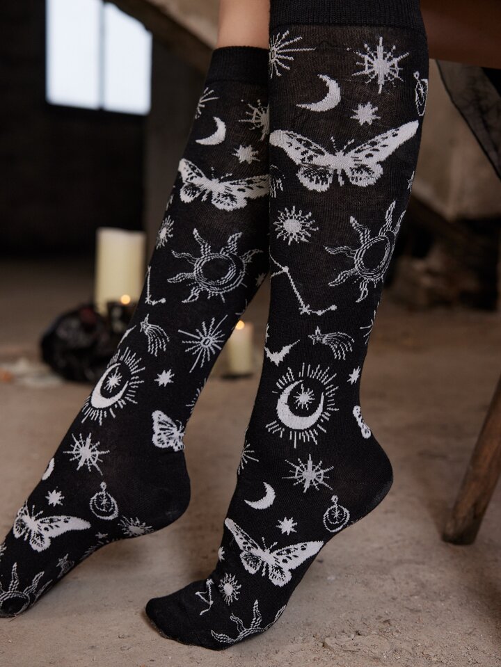Goth Butterfly & Sun Pattern Socks