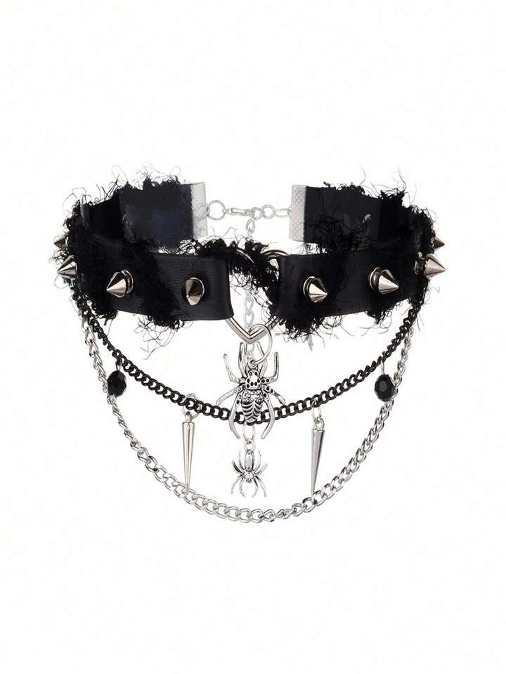 Goth Choker Necklace, Exaggerated Design, Tassel PU Necklace, Sweet & Spicy Accessories
