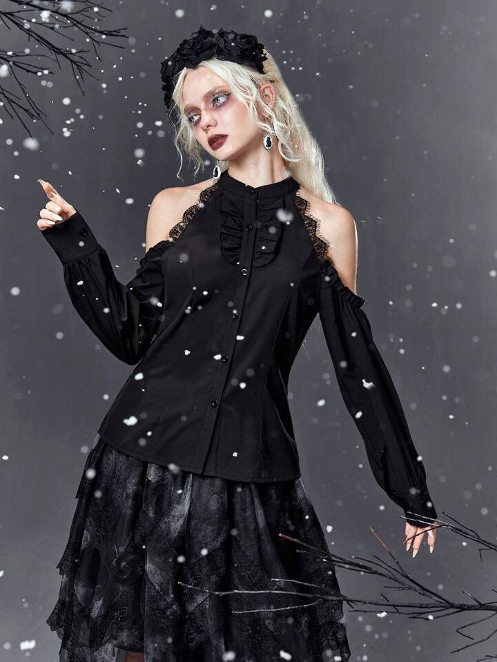 Goth Cold Shoulder Button Front Blouse Without Belt