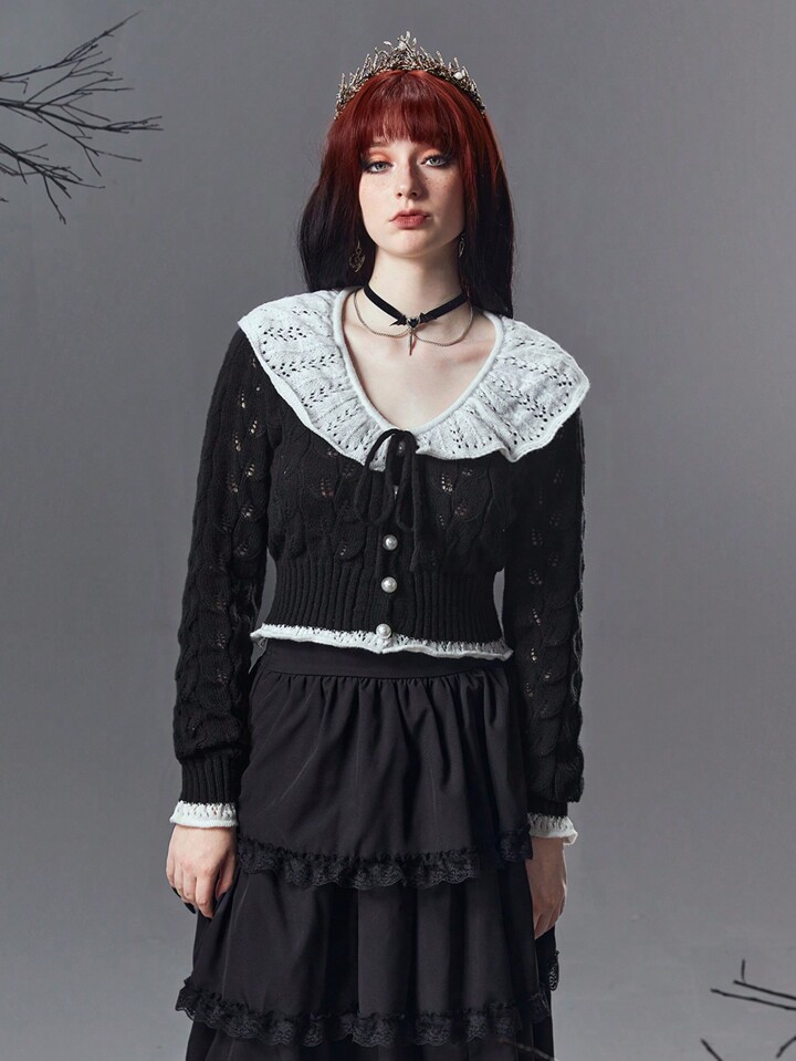 Goth Color-block Patchwork Lapel Cardigan