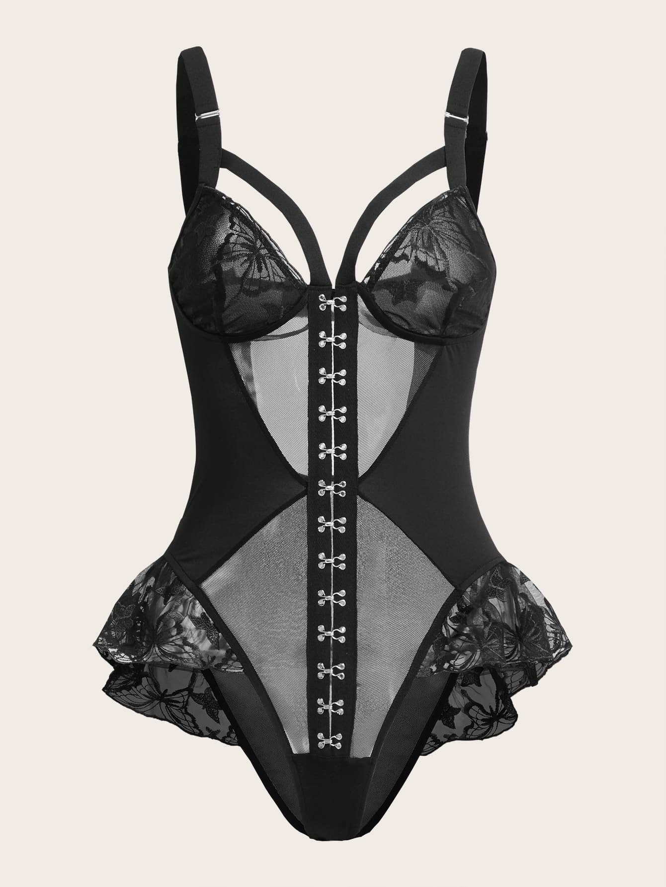 Goth Contrast Lace Mesh Teddy Bodysuit