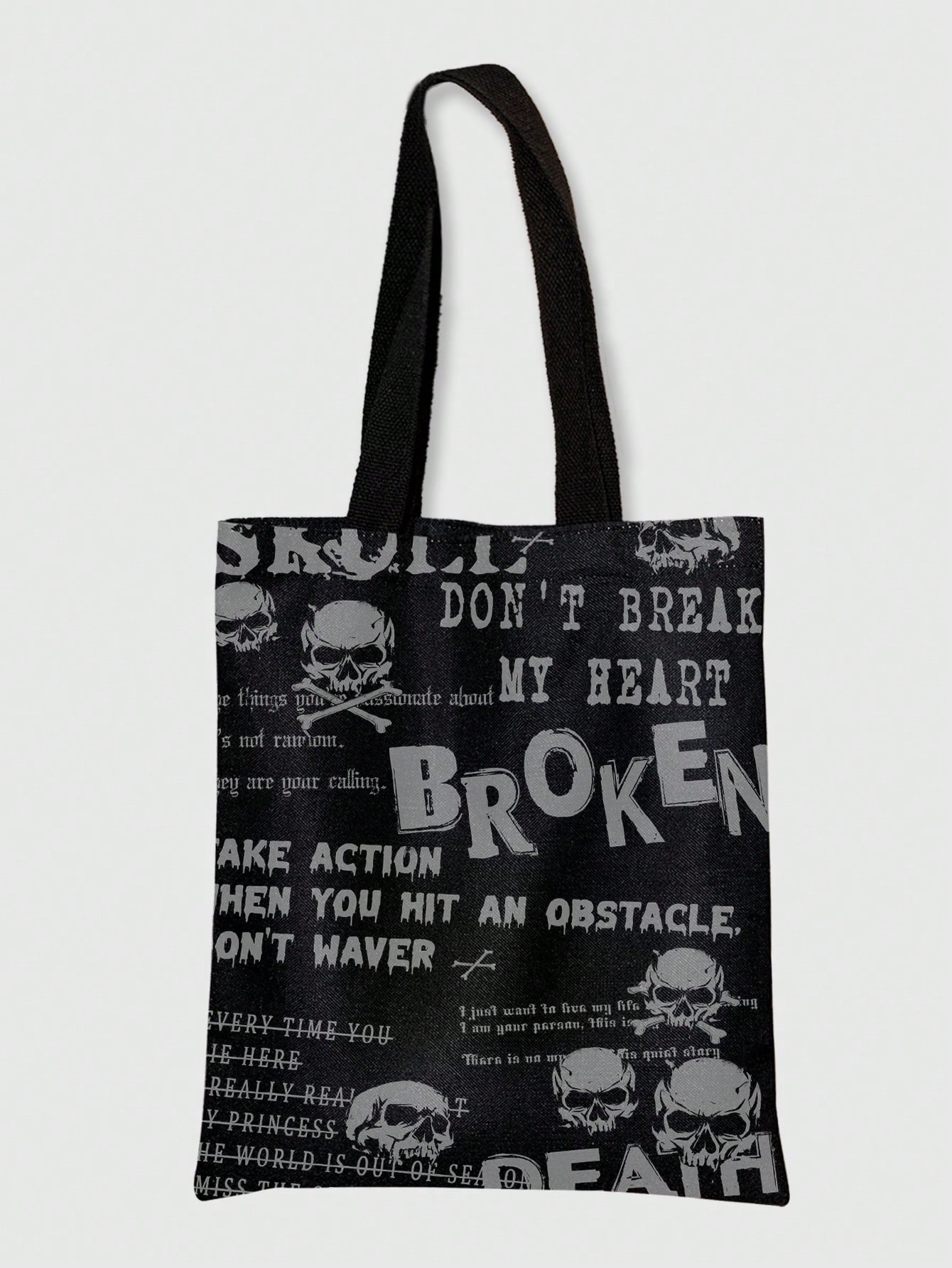 Goth Creative Skull & Double Sided Printed Shoulder Canvas Bag