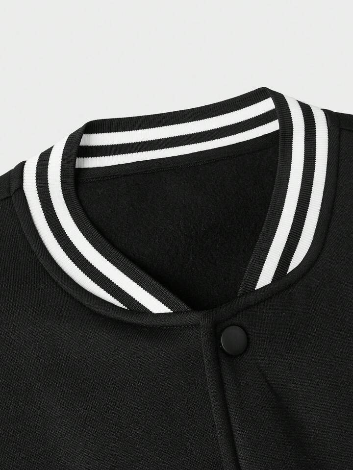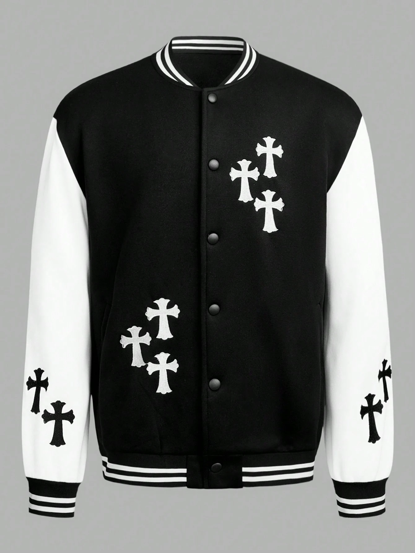Goth Cross Printed Contrast Stripe Baseball Jacket