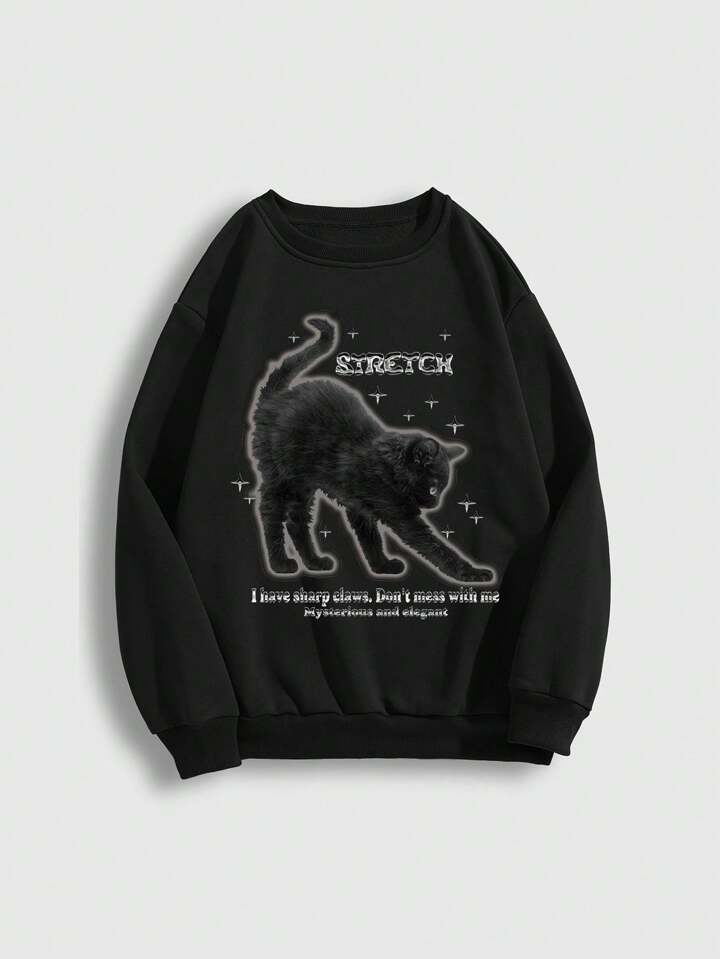 Goth Dark Cat Pattern Fleece Pullover Sweatshirt