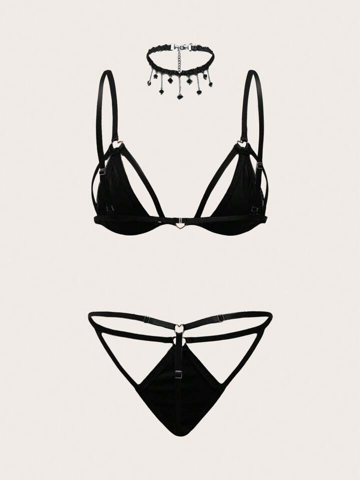 Goth Dark Sexy Lingerie Set For Women, Including Bra, Thong, And Choker