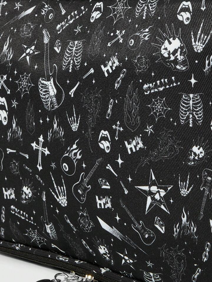 Goth Dark Skeleton Flame Pattern Large Capacity Portable Cosmetic Bag For Women, Item No. 1005965, Black Bag