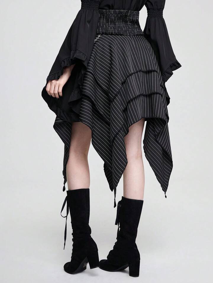 Goth Detachable Metal Chain Waist Belt High Waist Asymmetrical Layers Hem Skirt For Women