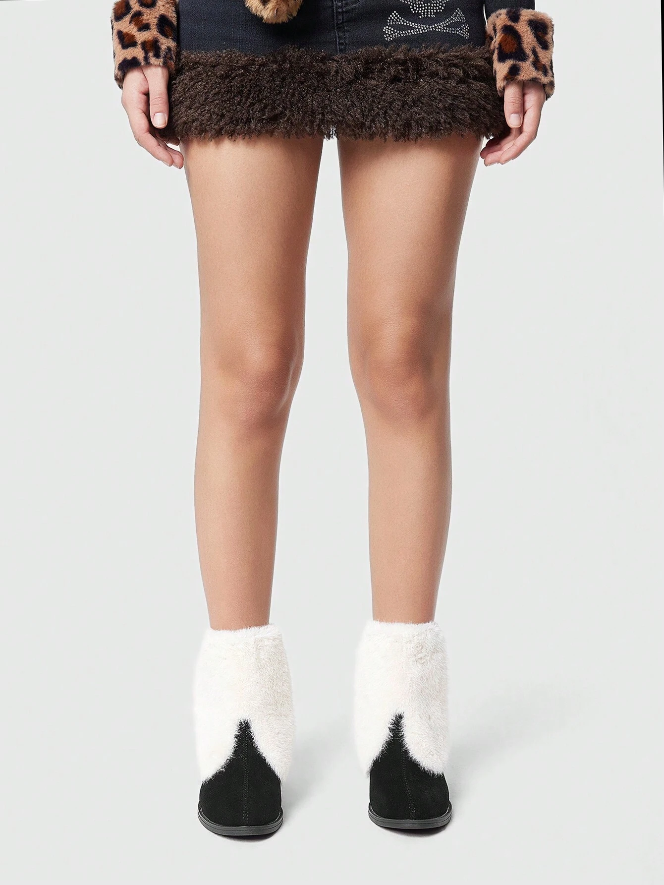Goth European & American Style White Fuzzy Boots, Side Zipper Pointed Toe Western Boots, Furry Boots, Ladies Ankle Boots And Short Boots