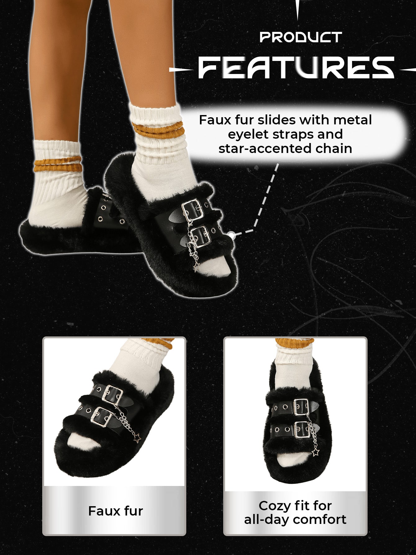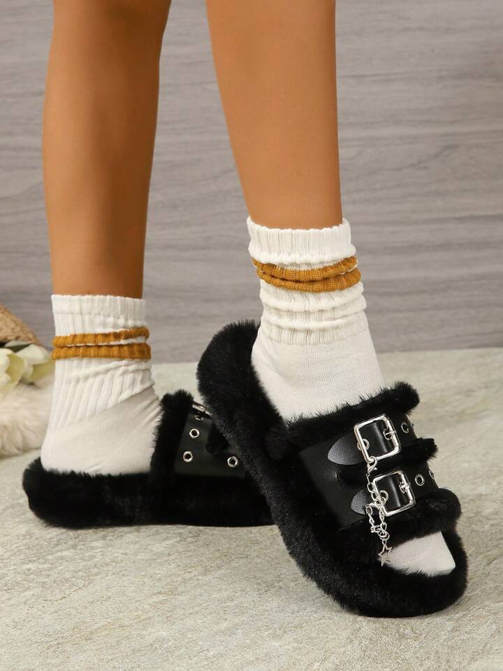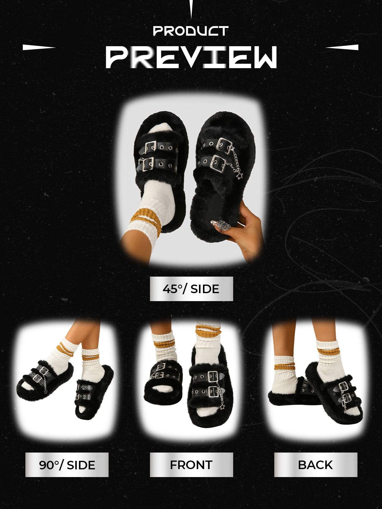 Goth Fashionable And Versatile Outer Wear, High-End Thick-Soled Star Chain Furry Slippers Fall New Year Holiday Valentines Spring Shoes