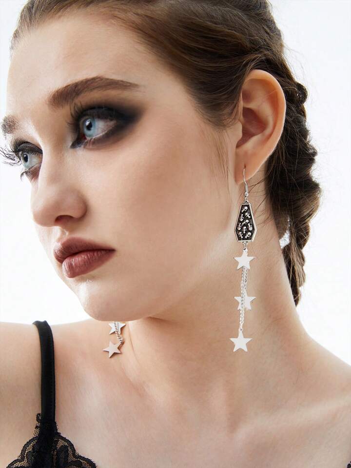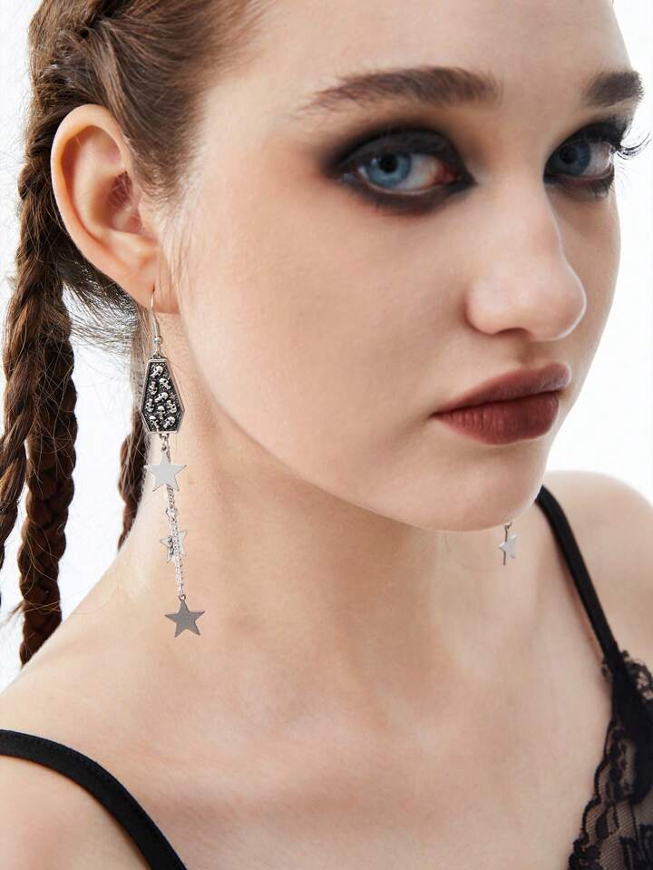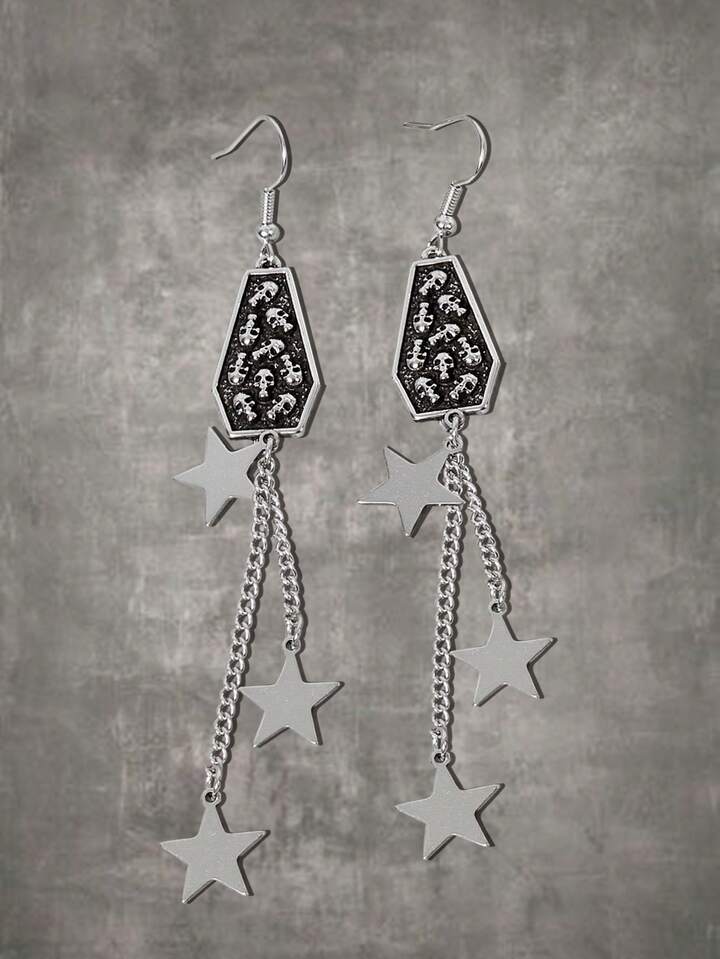 Goth Fashionable Vintage Skull & Star Design Earrings