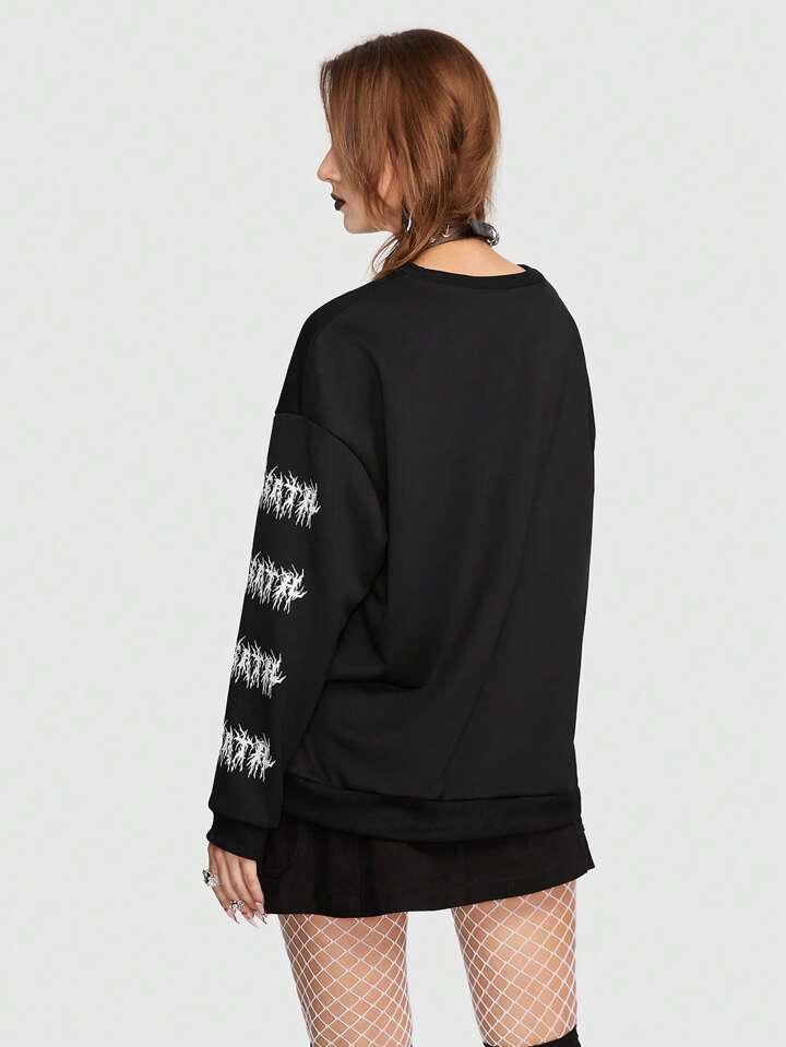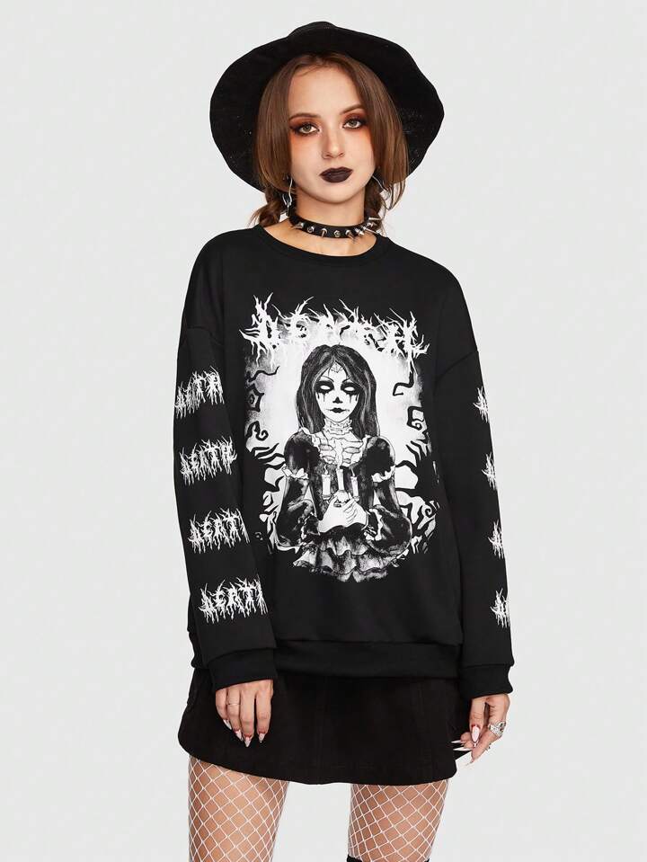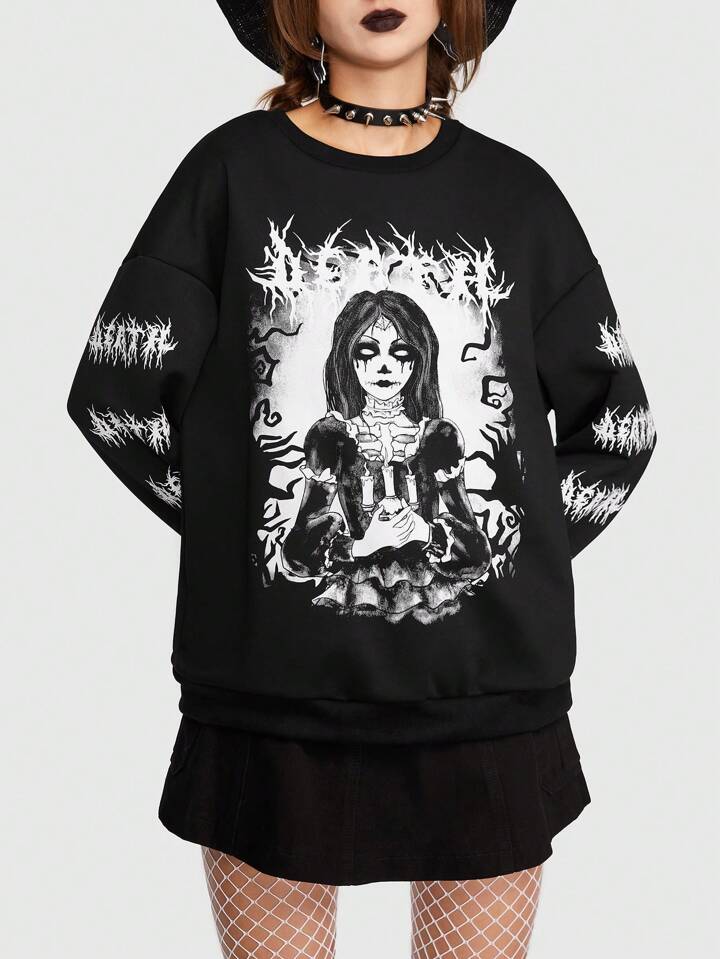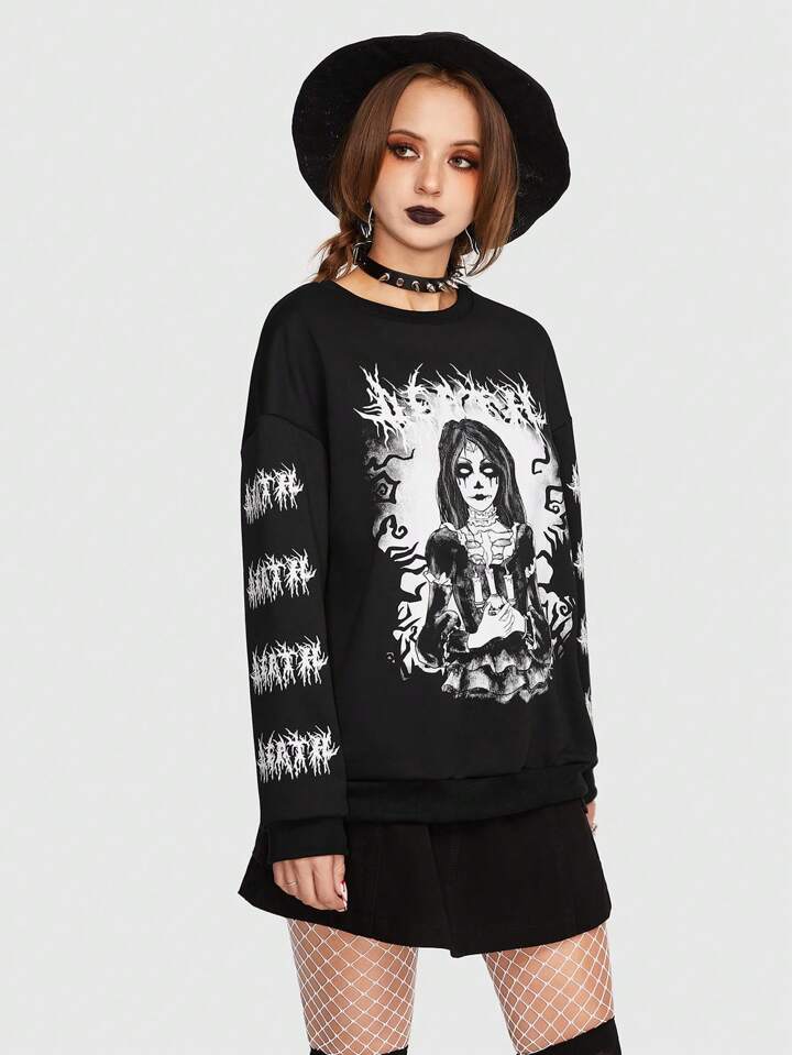 Goth Figure Graphic Drop Shoulder Sweatshirt