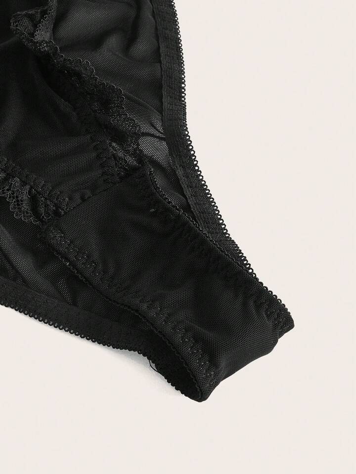 Goth Floral Embroidery Mesh Underwire Garter Teddy Bodysuit