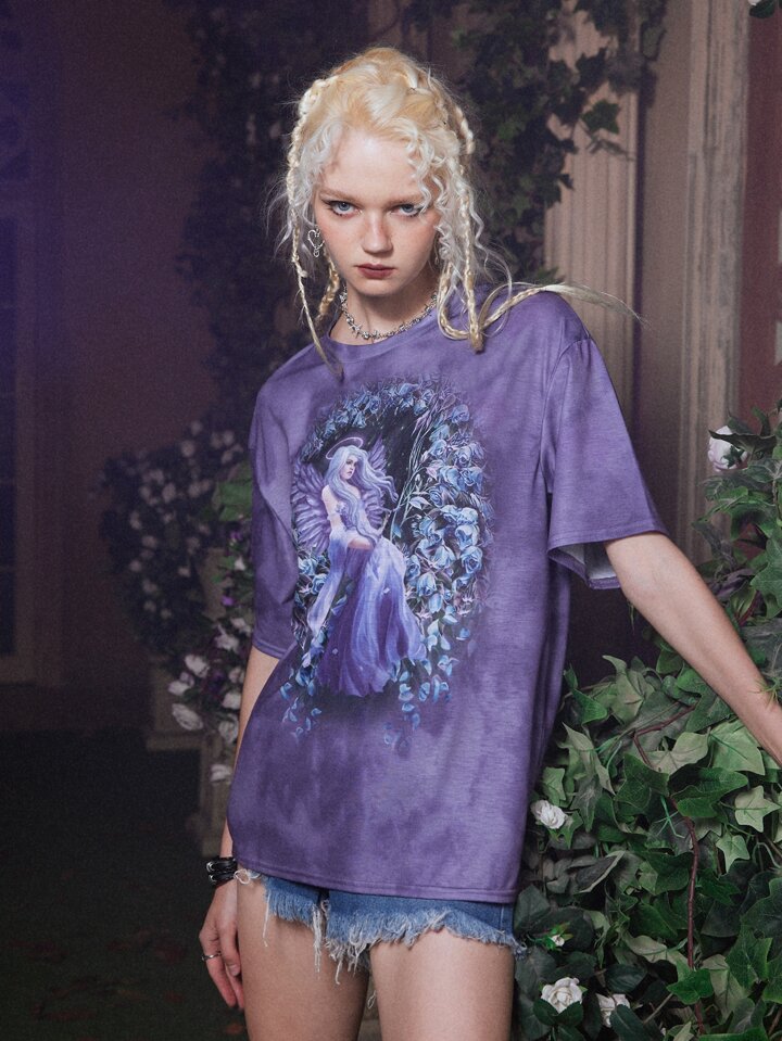 Goth Floral & Figure Graphic Tie Dye Drop Shoulder Tee