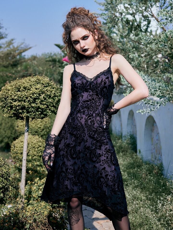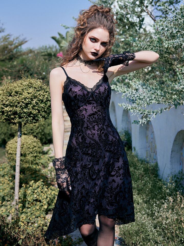 Goth Floral Lace Cami Dress