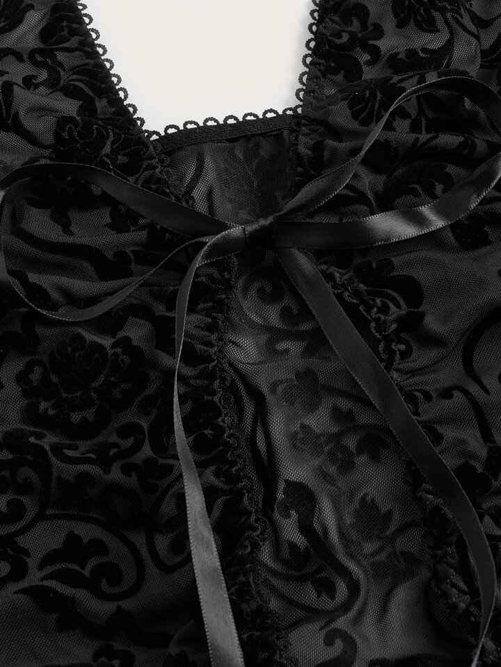 Goth Floral Lace Plunging Teddy Bodysuit With 1pair Oversleeves, Lingerie