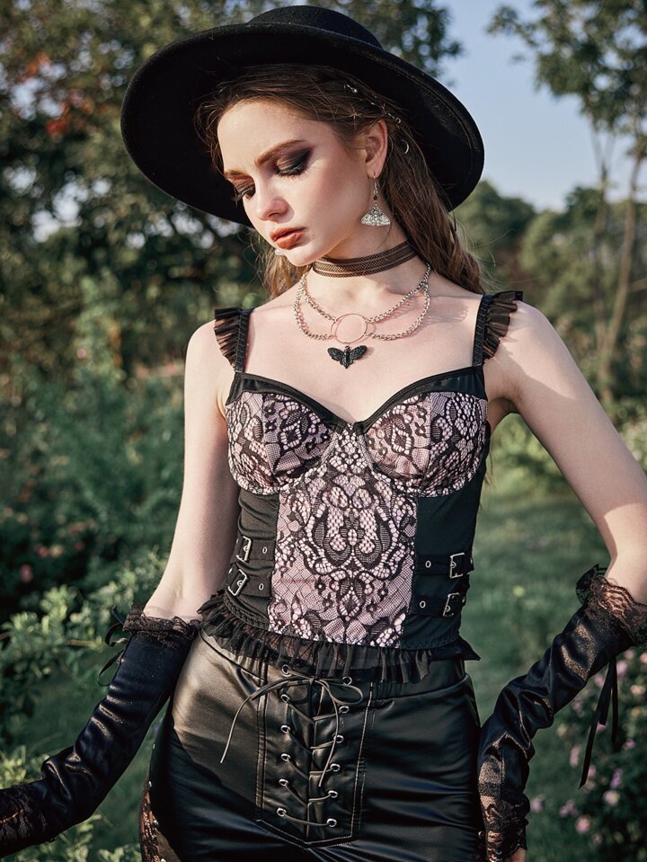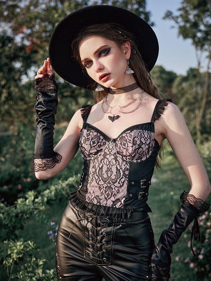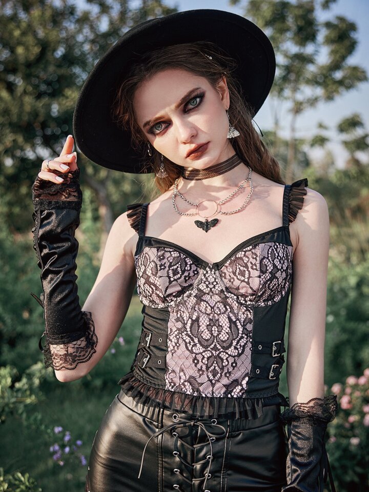 Goth Floral Lace Ruffle Trim Top Without Oversleeves