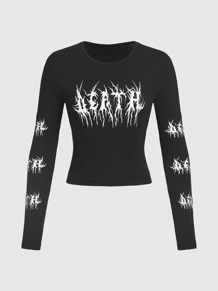 Goth Graphic Print Crop Tee