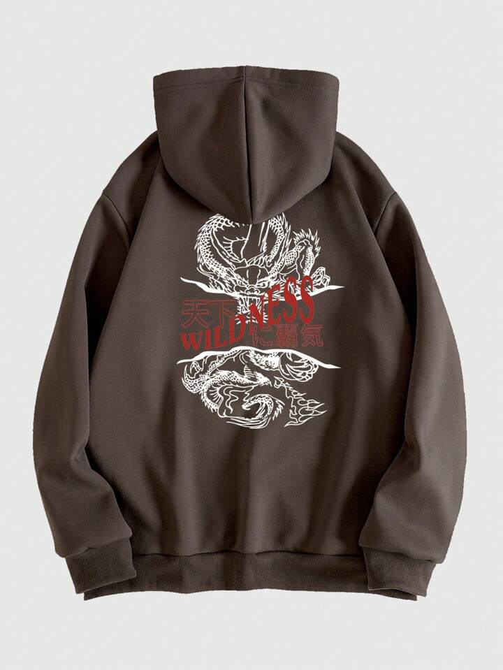 Goth Guys Dragon & Letter Graphic Thermal Lined Hoodie