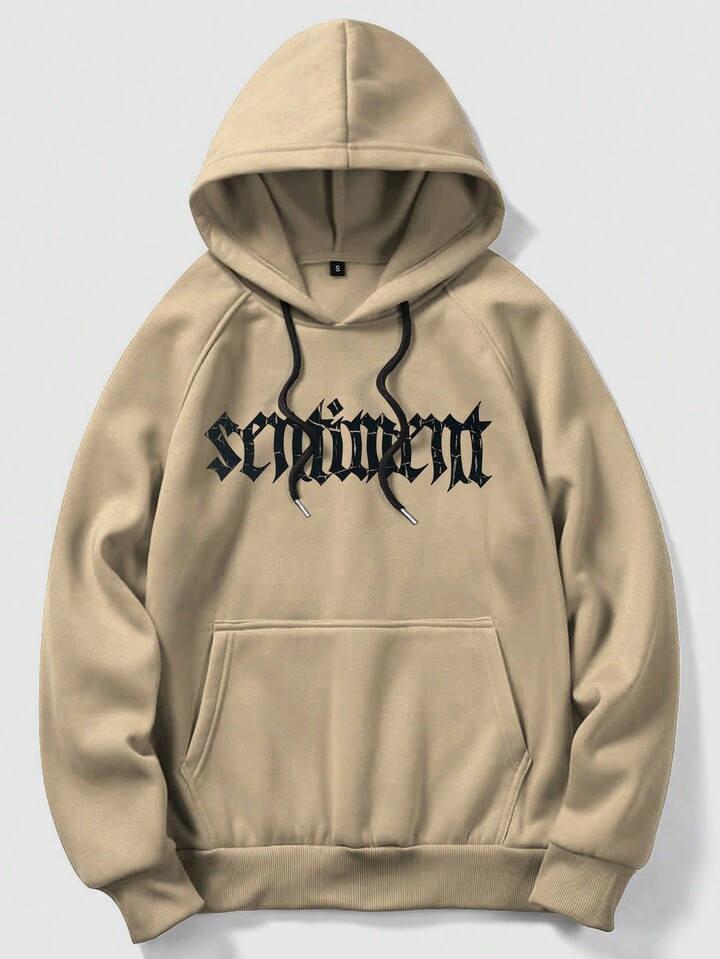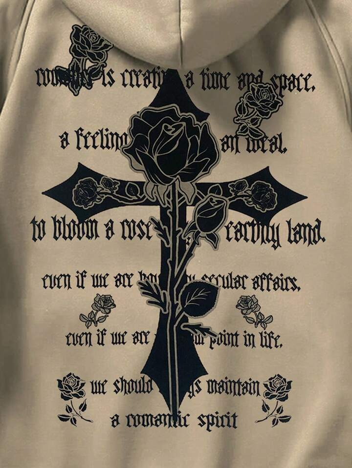 Goth Guys Floral & Slogan Graphic Raglan Sleeve Drawstring Thermal Lined Hoodie