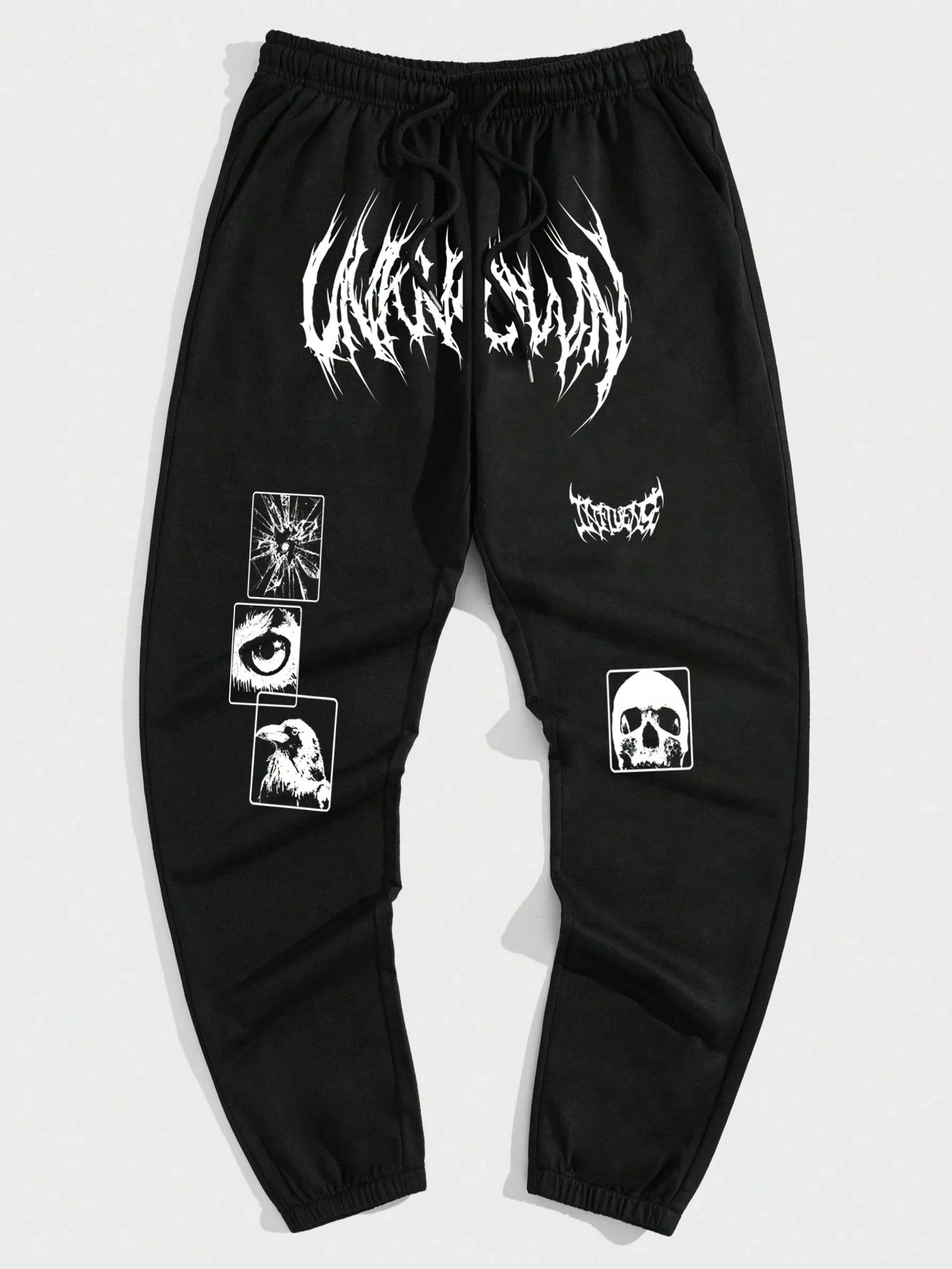 Goth Guys Skull & Letter Graphic Drawstring Waist Sweatpants