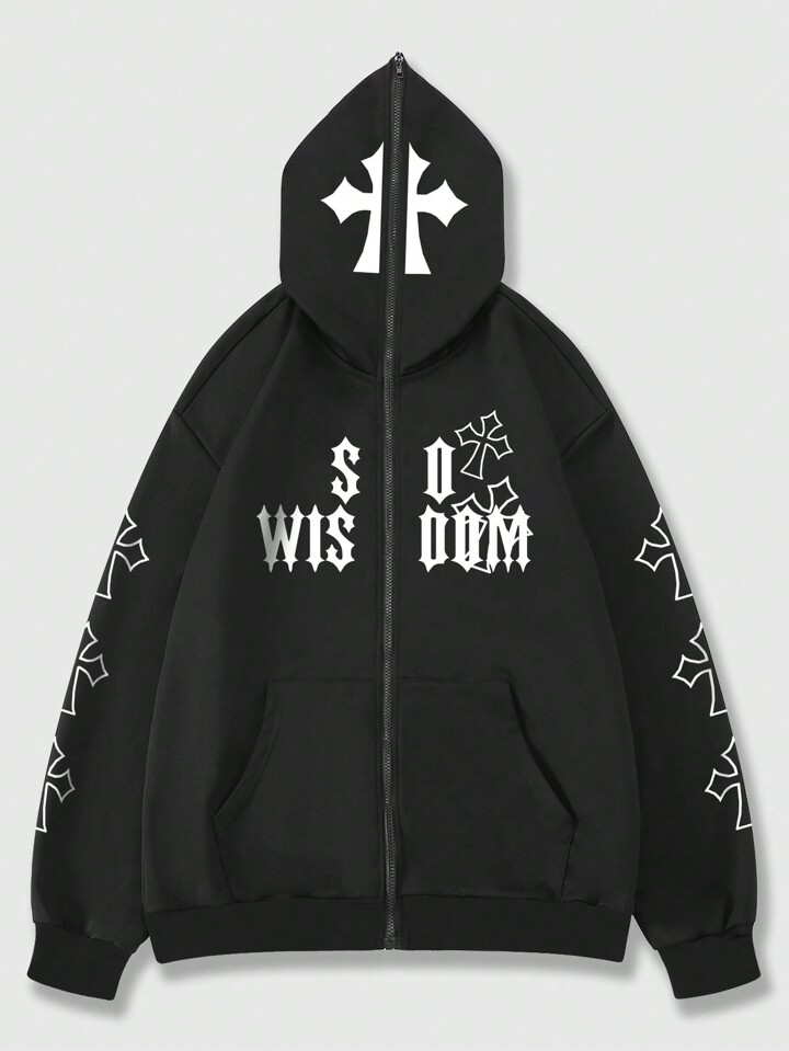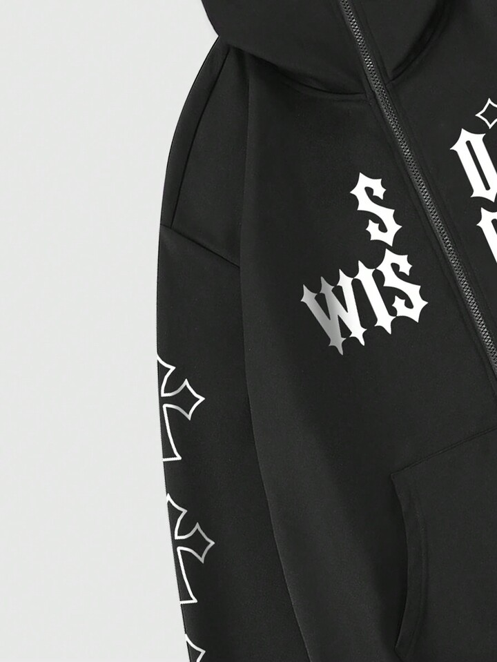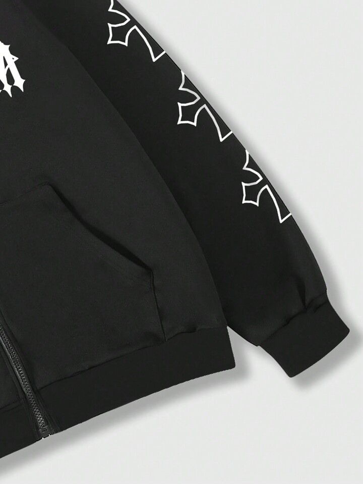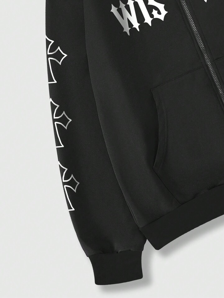 Goth Guys Slogan Graphic Zip Up Hoodie