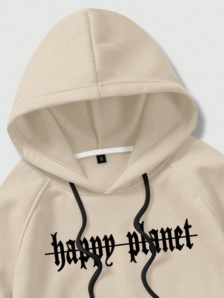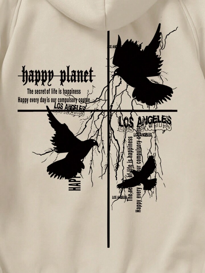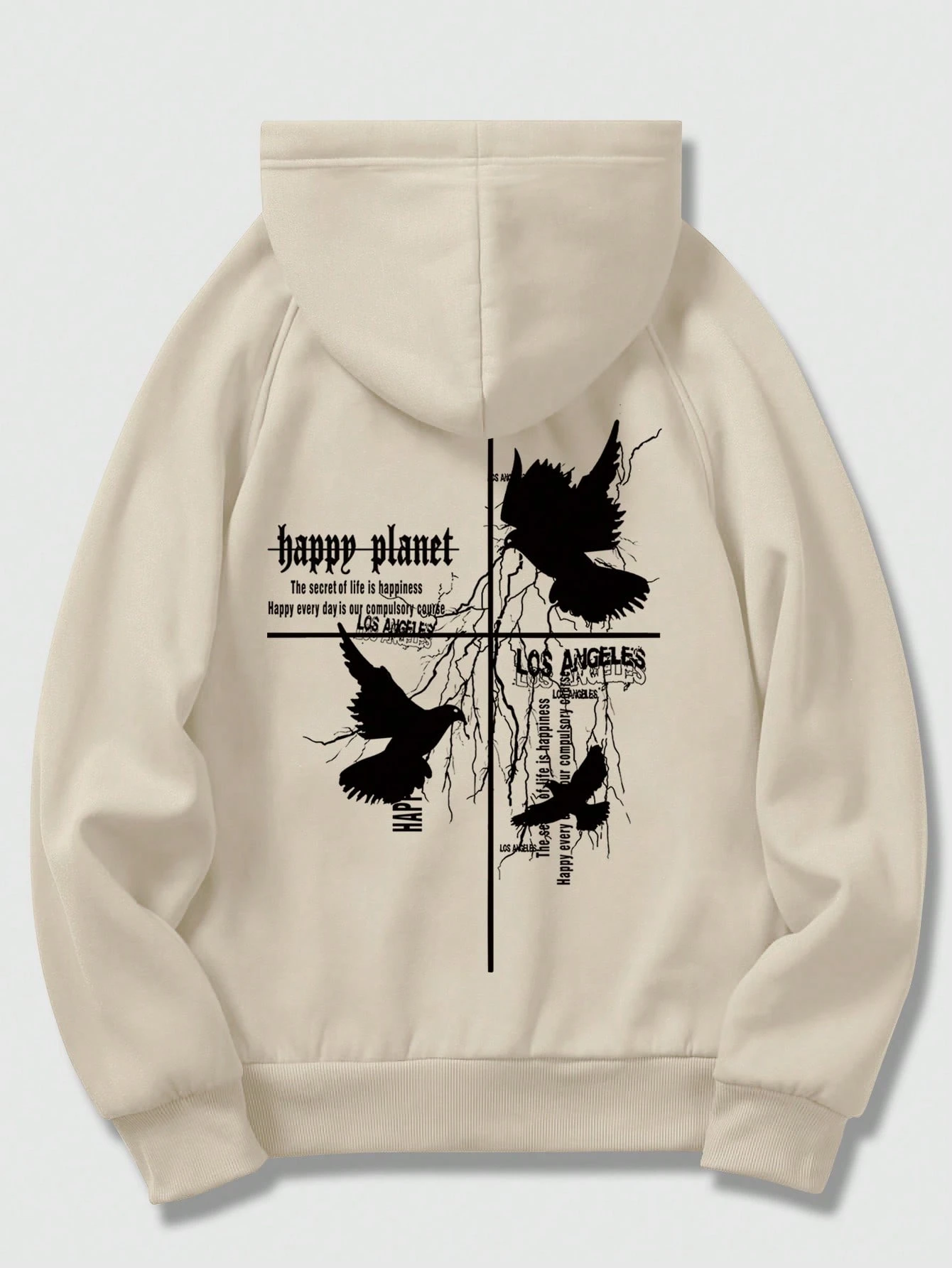Goth Guys Slogan & Pigeon Print Kangaroo Pocket Drawstring Thermal Lined Hoodie