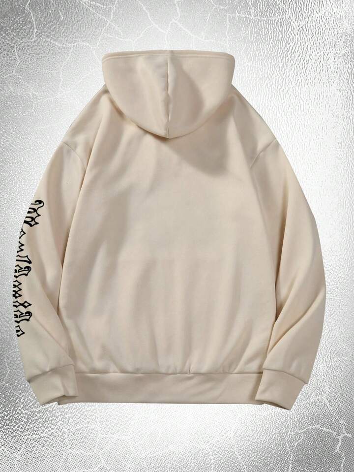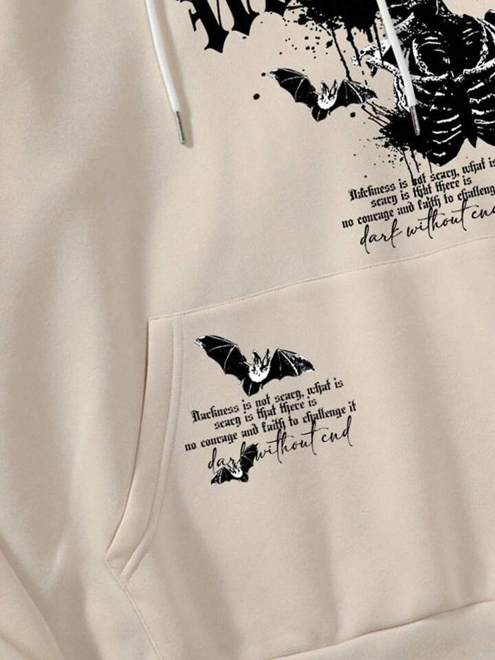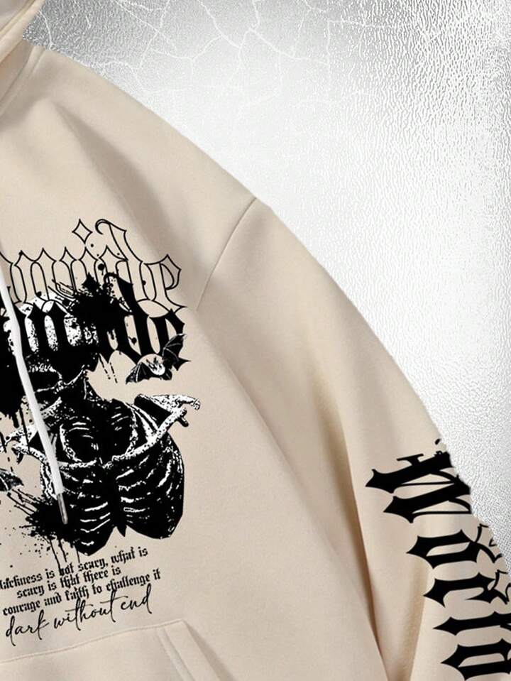 Goth Guys Slogan Skeleton Graphic Thermal Lined Drawstring Hoodie
