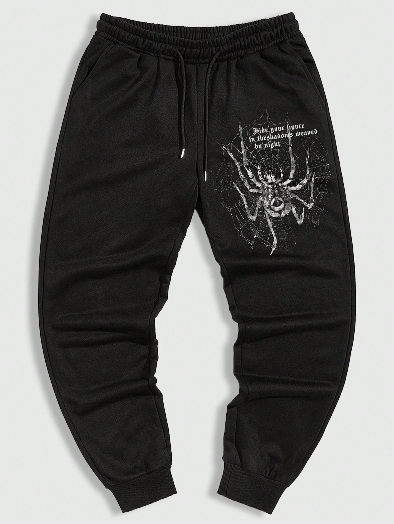 Goth Guys Spider Slogan Graphic Drawstring Waist Sweatpants