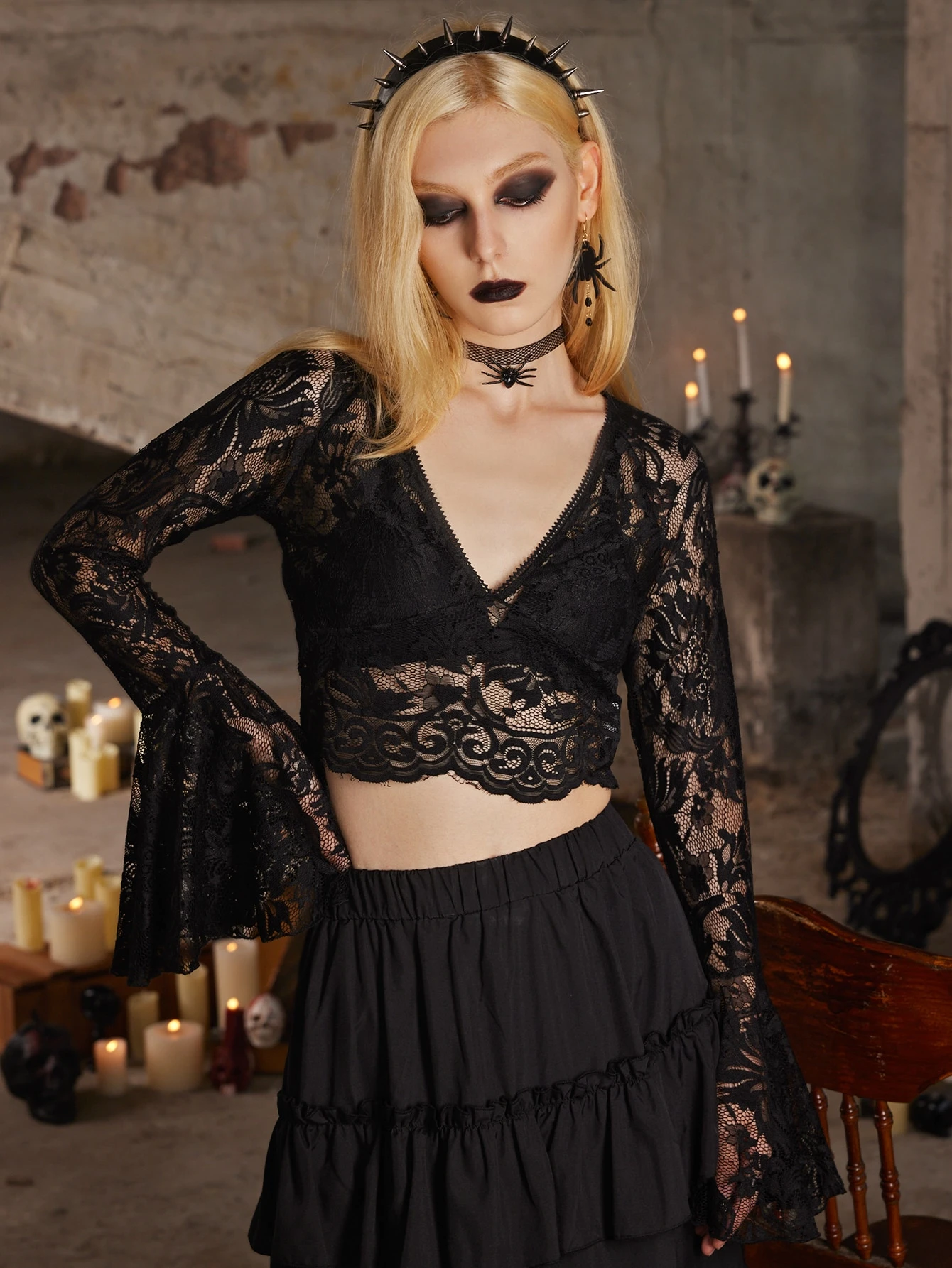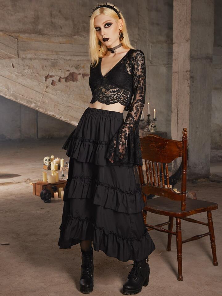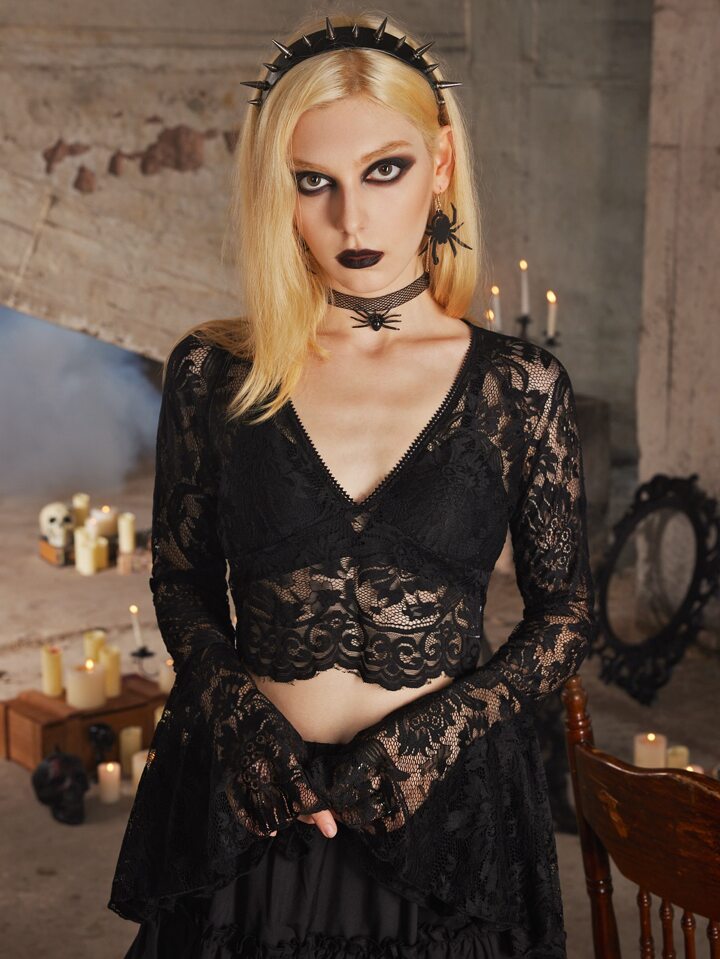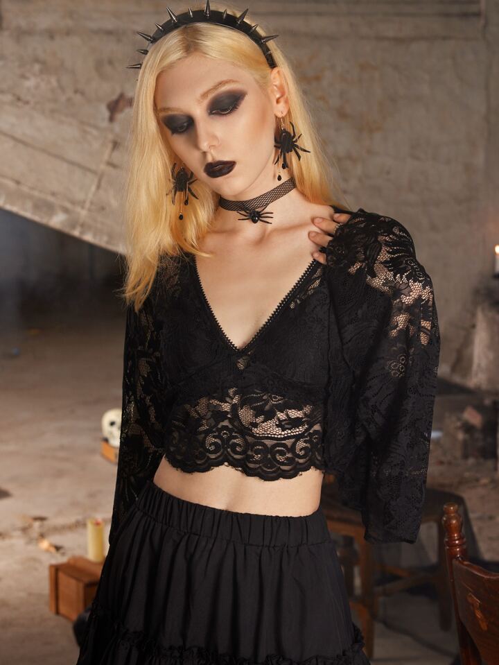 Goth Lace Flounce Sleeve Top