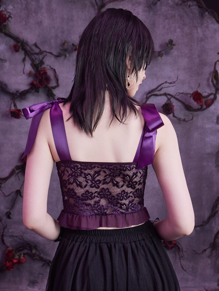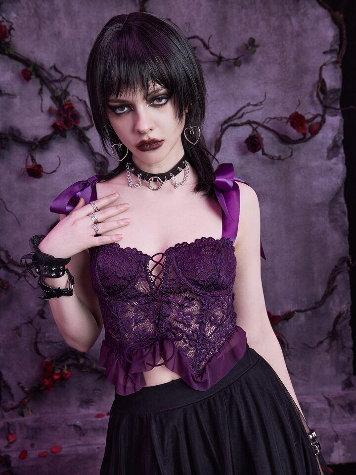 Goth Lace Tie Shoulder Cami Top