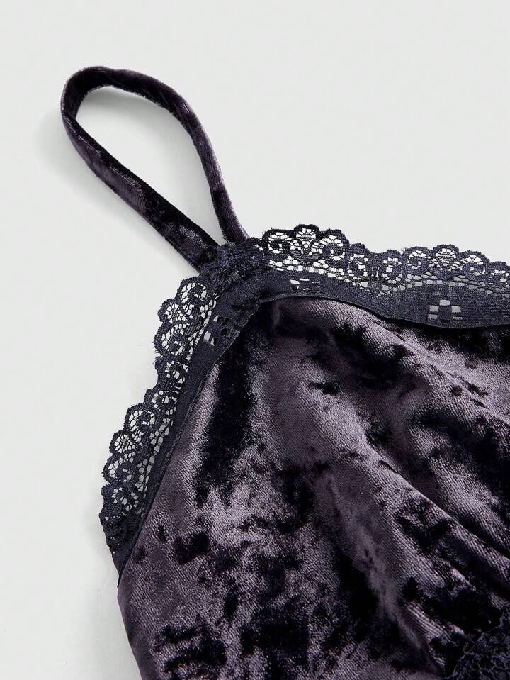 Goth Lace Trim Velvet Cami Top