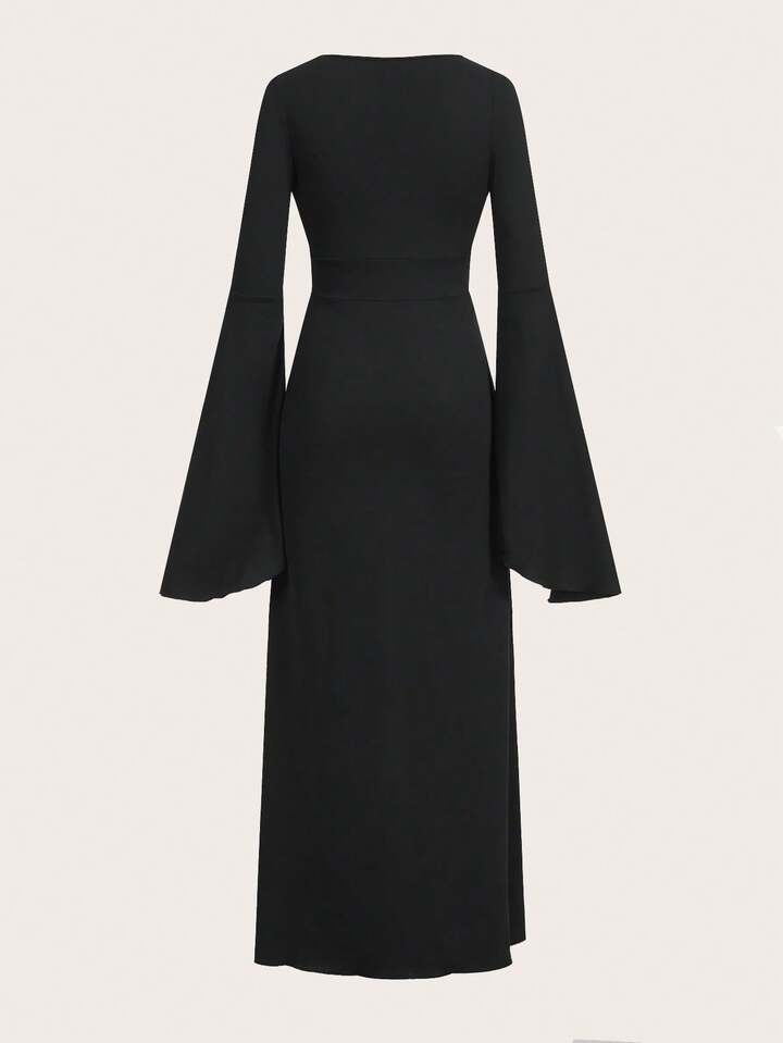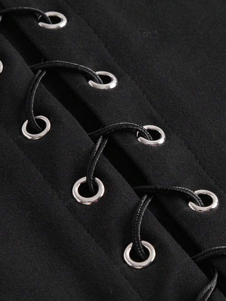 Goth Lace Up Front Embroidery Flare Sleeve Dress