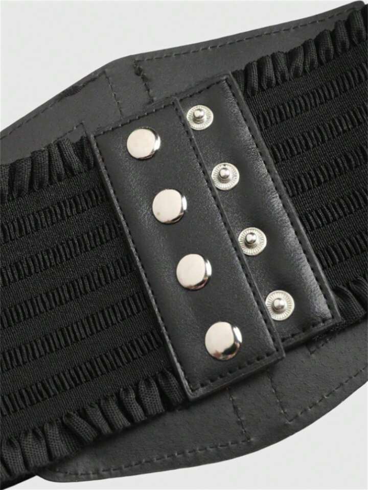 Goth Lace-Up PU Leather Crop Top & Belt Festival Party Wear