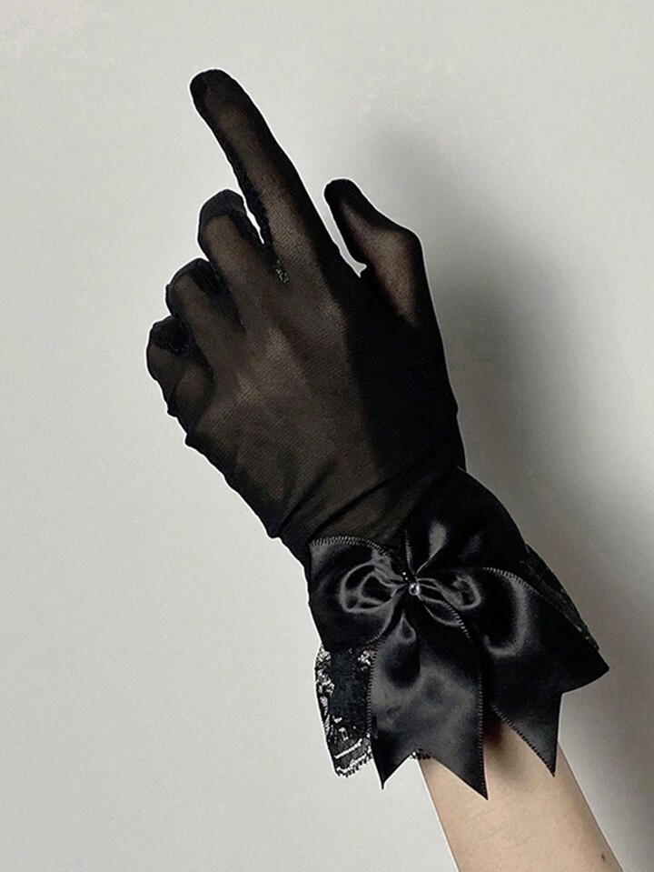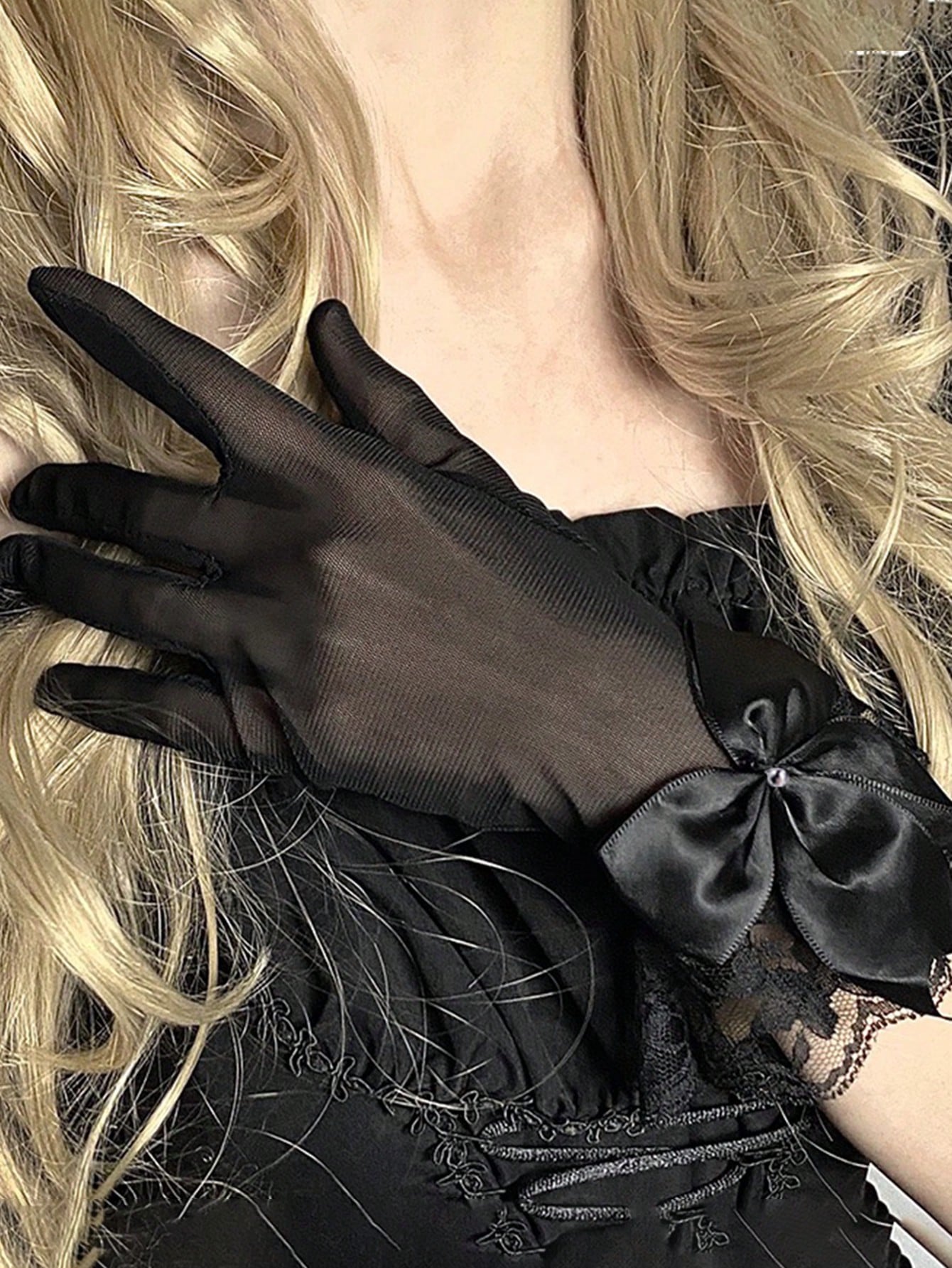 Goth Ladies Mesh Lace Bowknot Five-Finger Gloves
