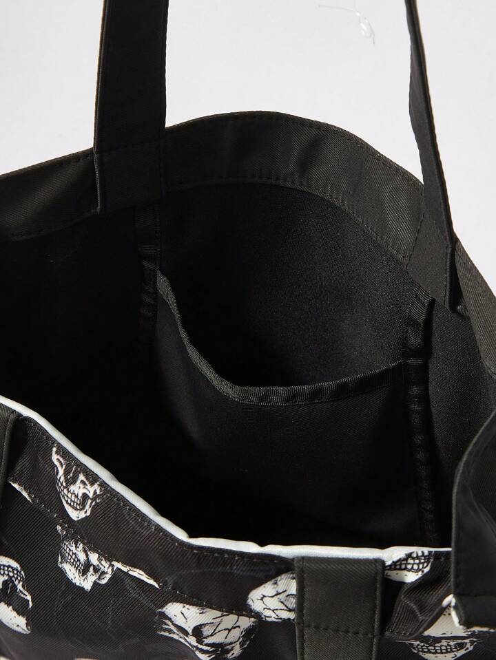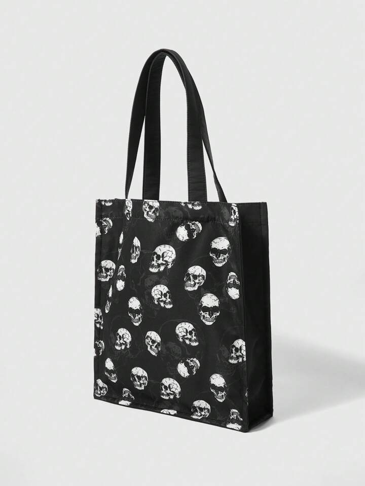 Goth Large Capacity Print Skull Tote Bag, Dark Punk Style
