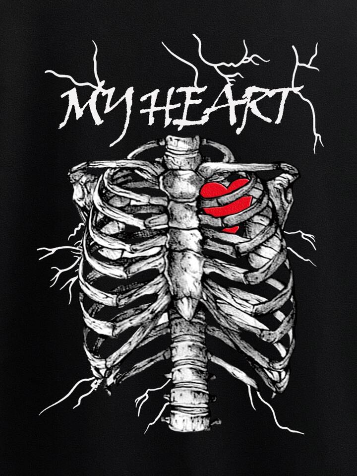 Goth Letter Skeleton & Heart Graphic Sweatshirt