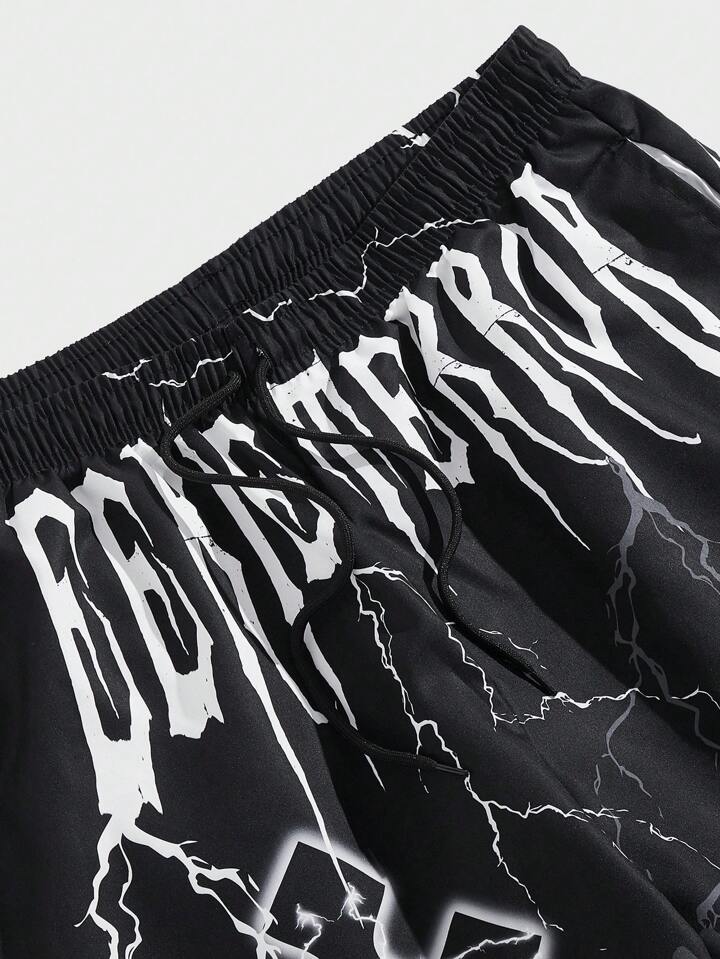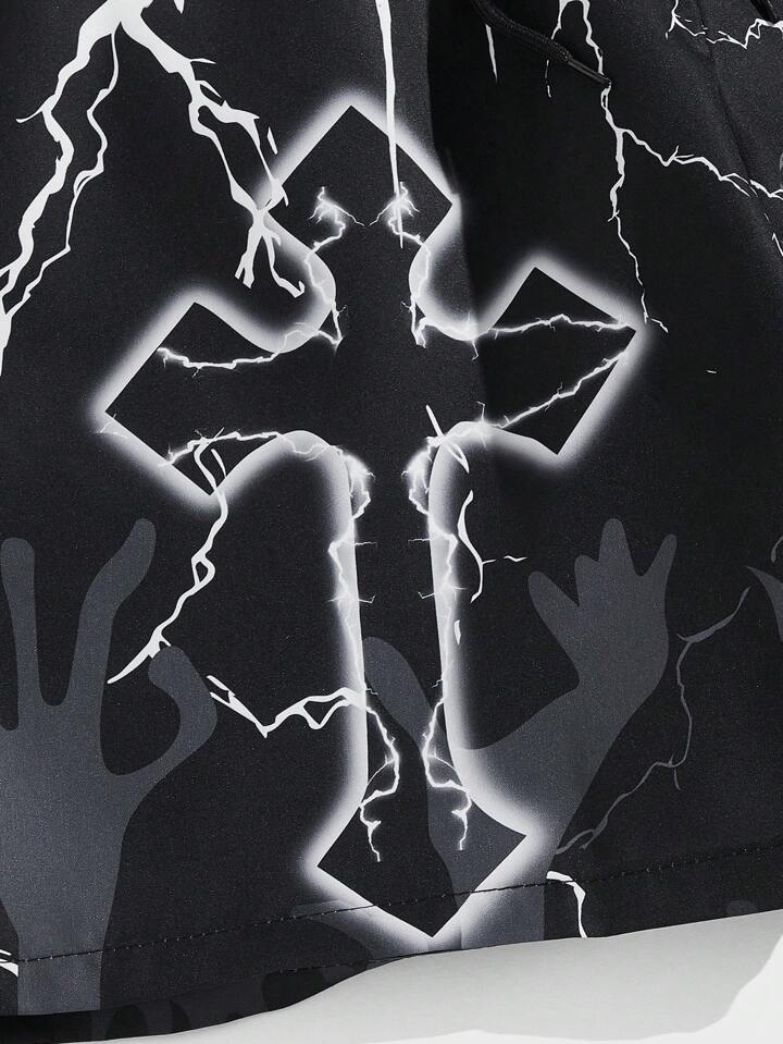 Goth Men Cross Letter Graphic Drawstring Waist Shorts, Football Style