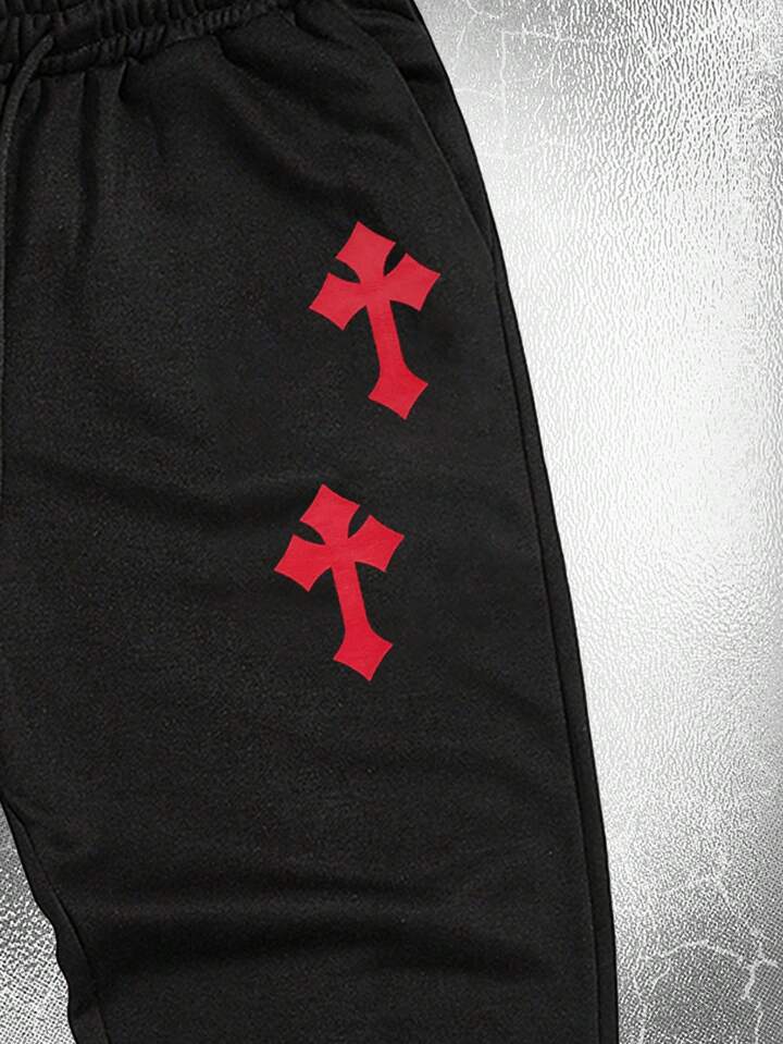 Goth Men Cross Print Drawstring Waist Sweatpants