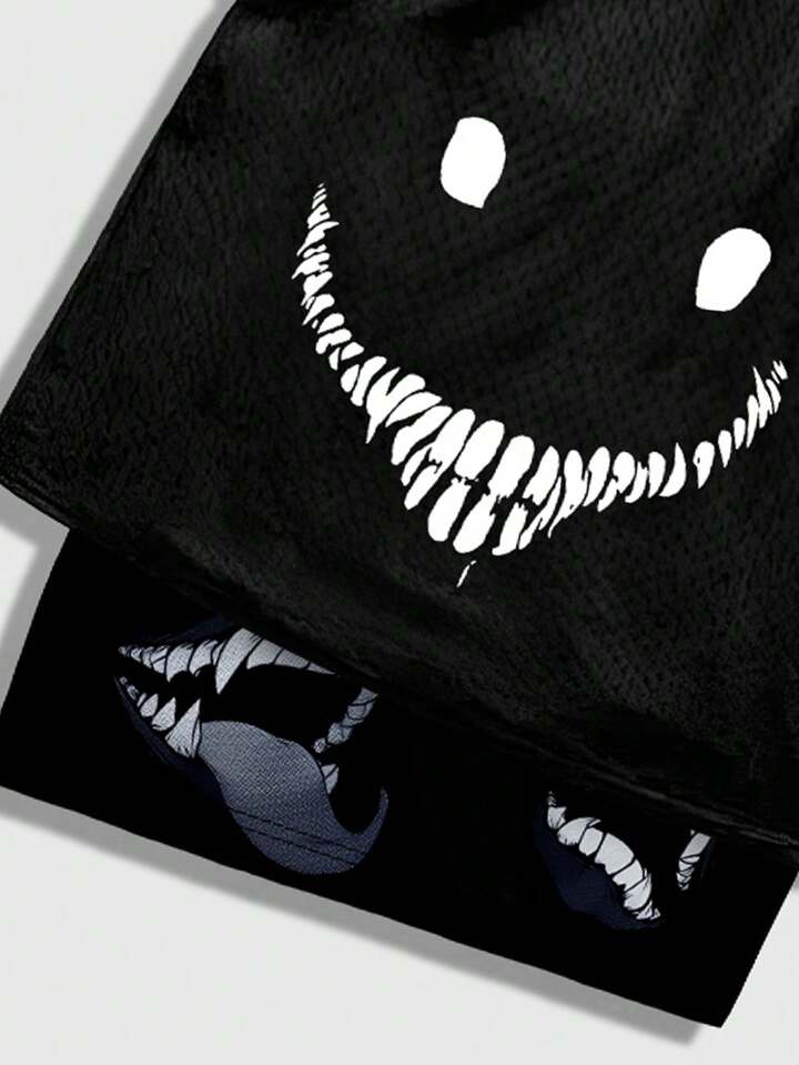 Anime Men Figure Graphic Drawstring Waist Mesh Basketball Shorts, School