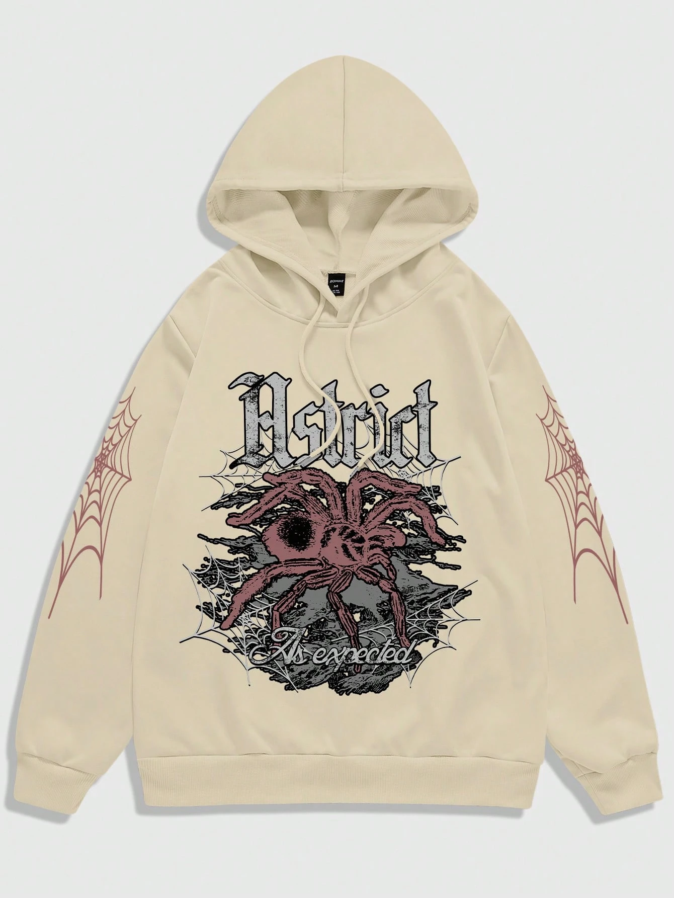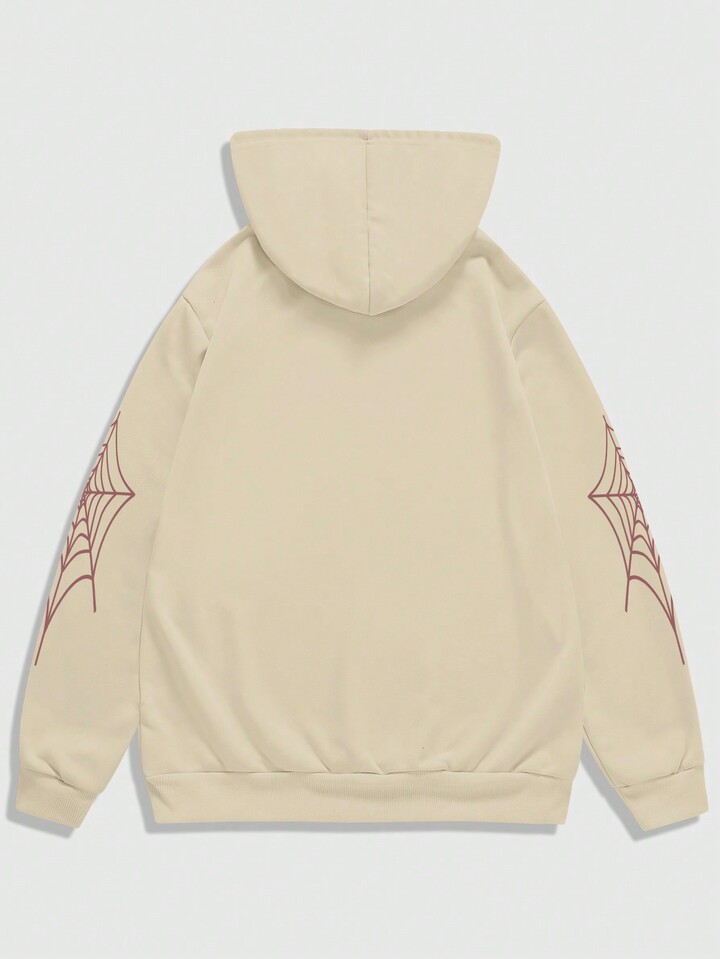 Goth Men Spider & Letter Print Hooded Sweatshirt With Long Sleeves
