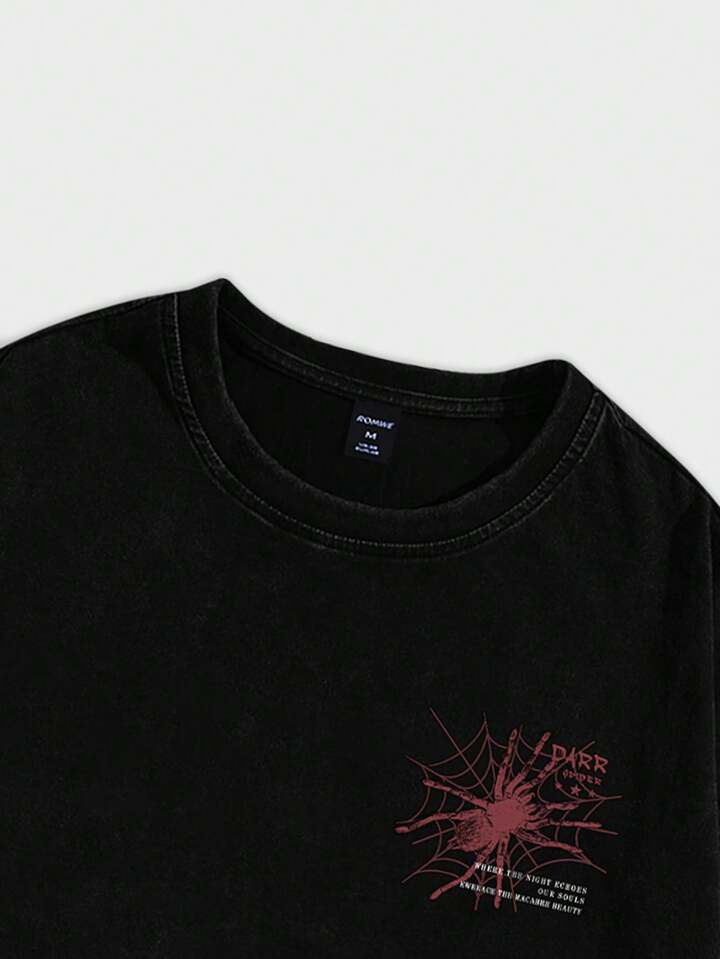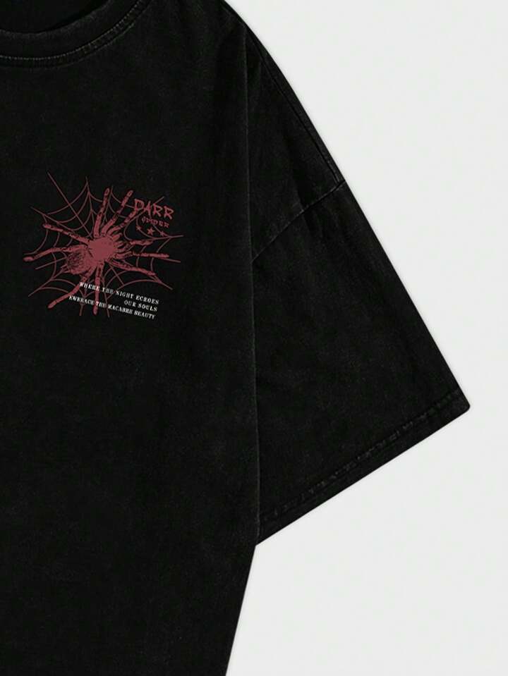 Goth Men Spider Slogan Graphic Tee For Halloween, School, 2000s Style