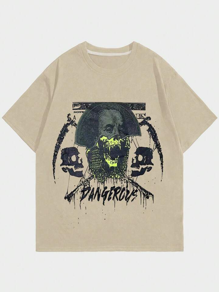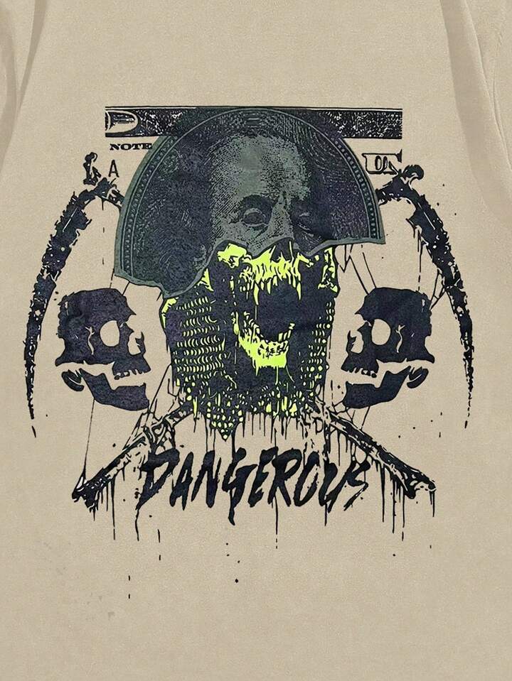 Goth Men Street Fashion Skull Printed Round Neck T-Shirt Is Suitable For Casual Daily Spring And Summer Seasons