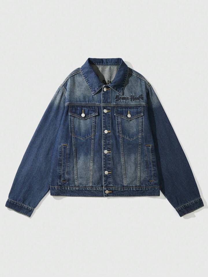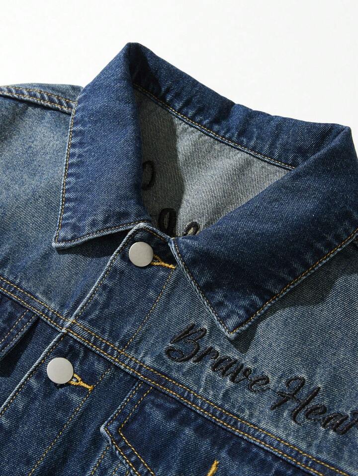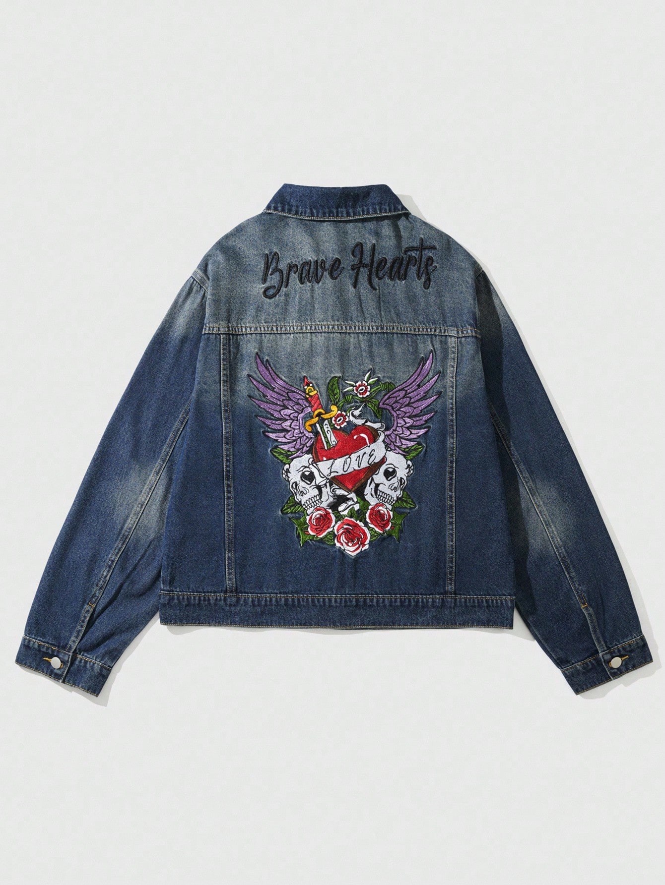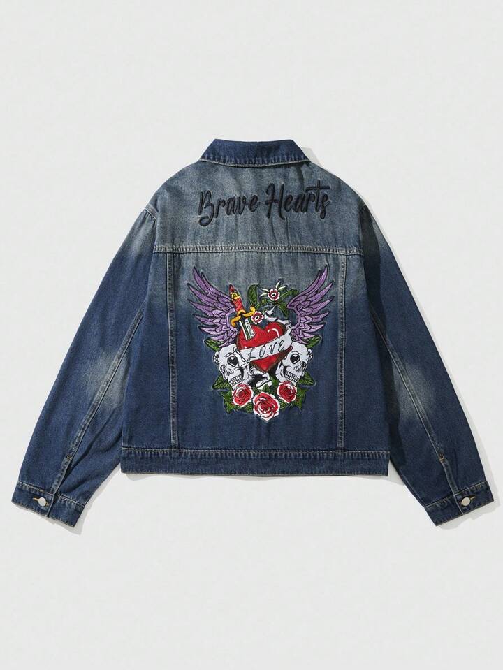 Goth Men's Autumn Letter & Skull Embroidery Single-Breasted Casual Denim Jacket