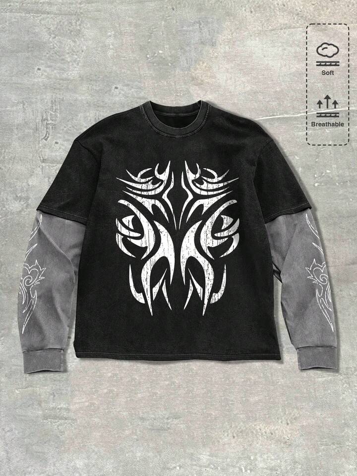 Goth Men's Casual 2 In 1 Print Long Sleeve T-Shirt