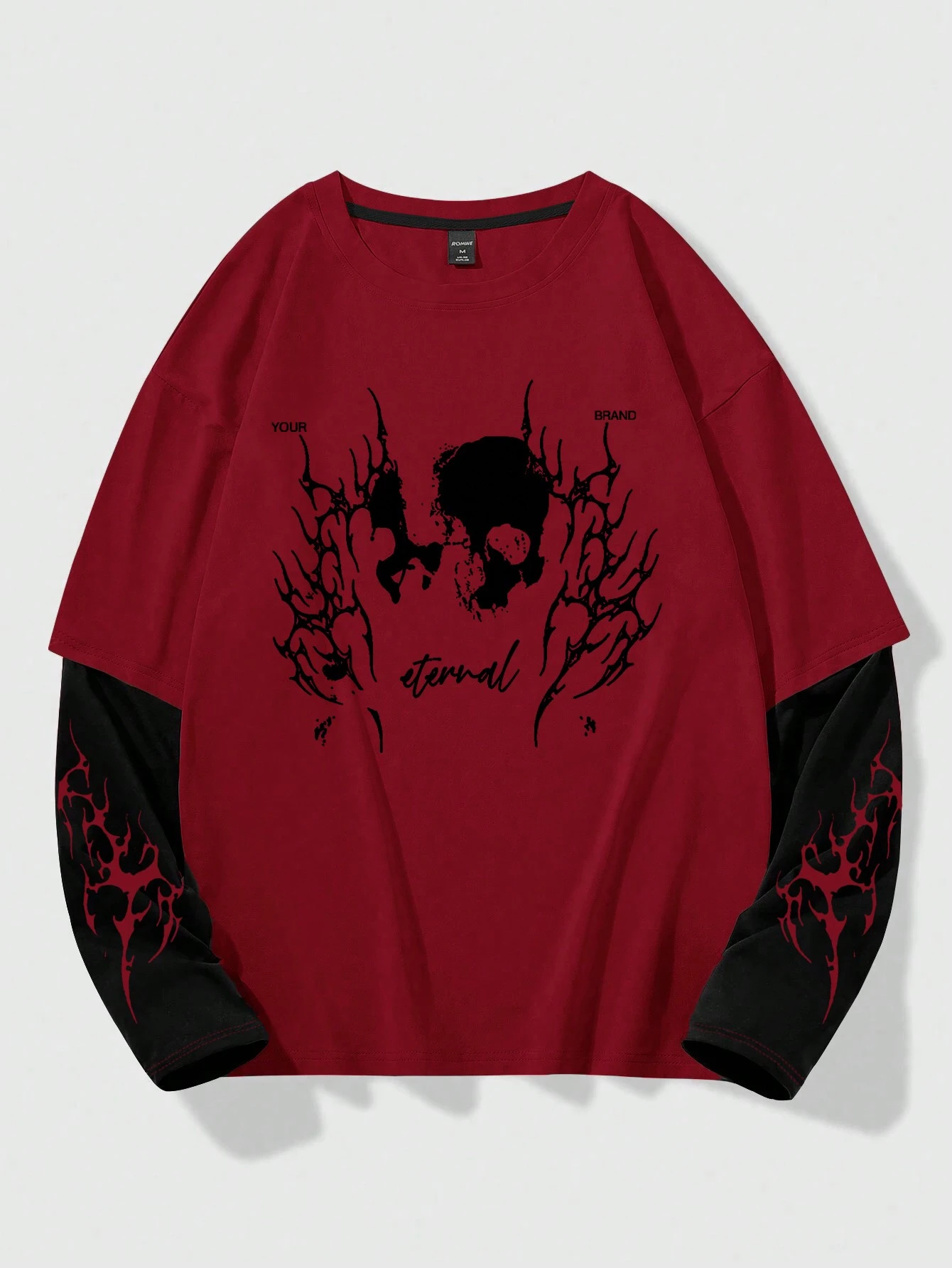 Goth Men's Casual Crew Neck Skeleton Print Long Sleeve T-Shirt, Autumn