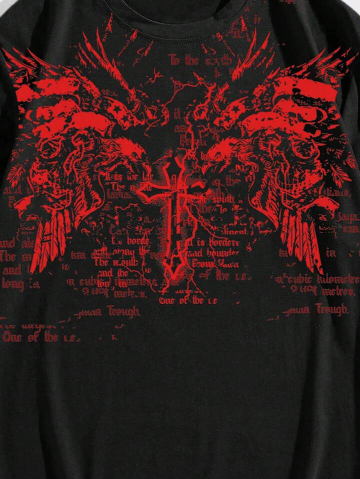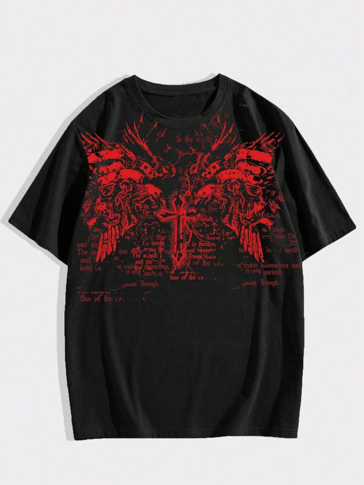 Goth Men's Casual Cross & Slogan Print Short Sleeve T-Shirt, Summer