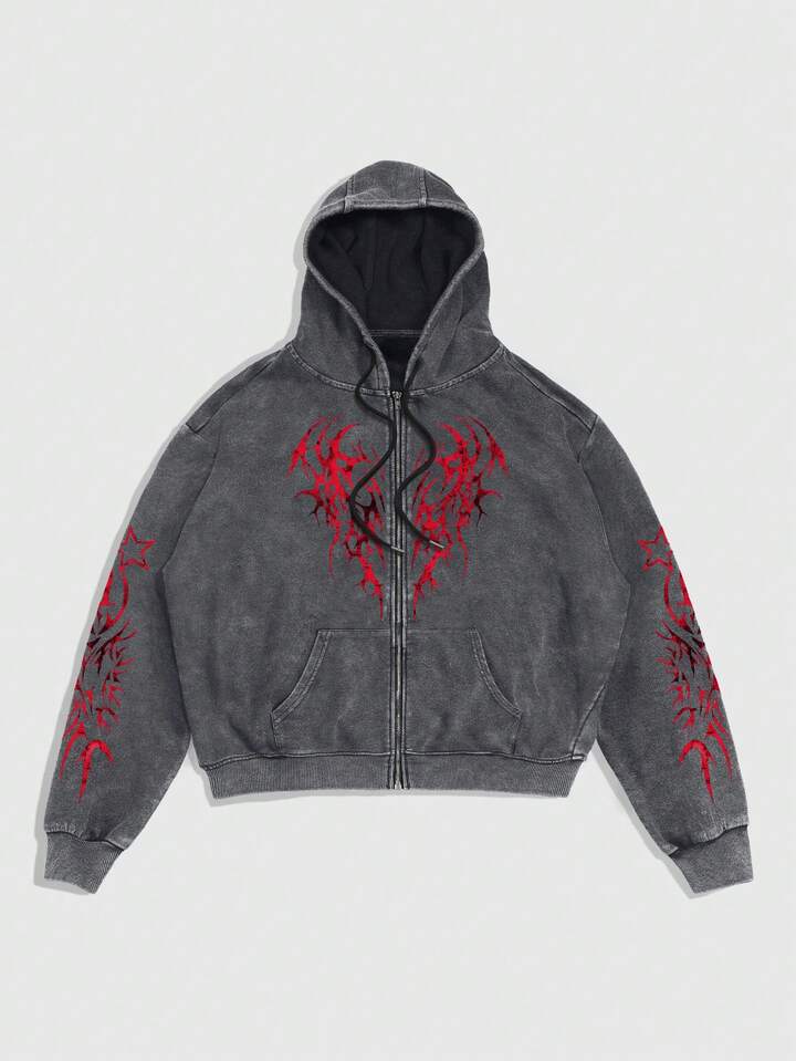 Goth Men's Casual Graphic Print Sherpa Zip-Up Drawstring Hoodie Sweatshirt